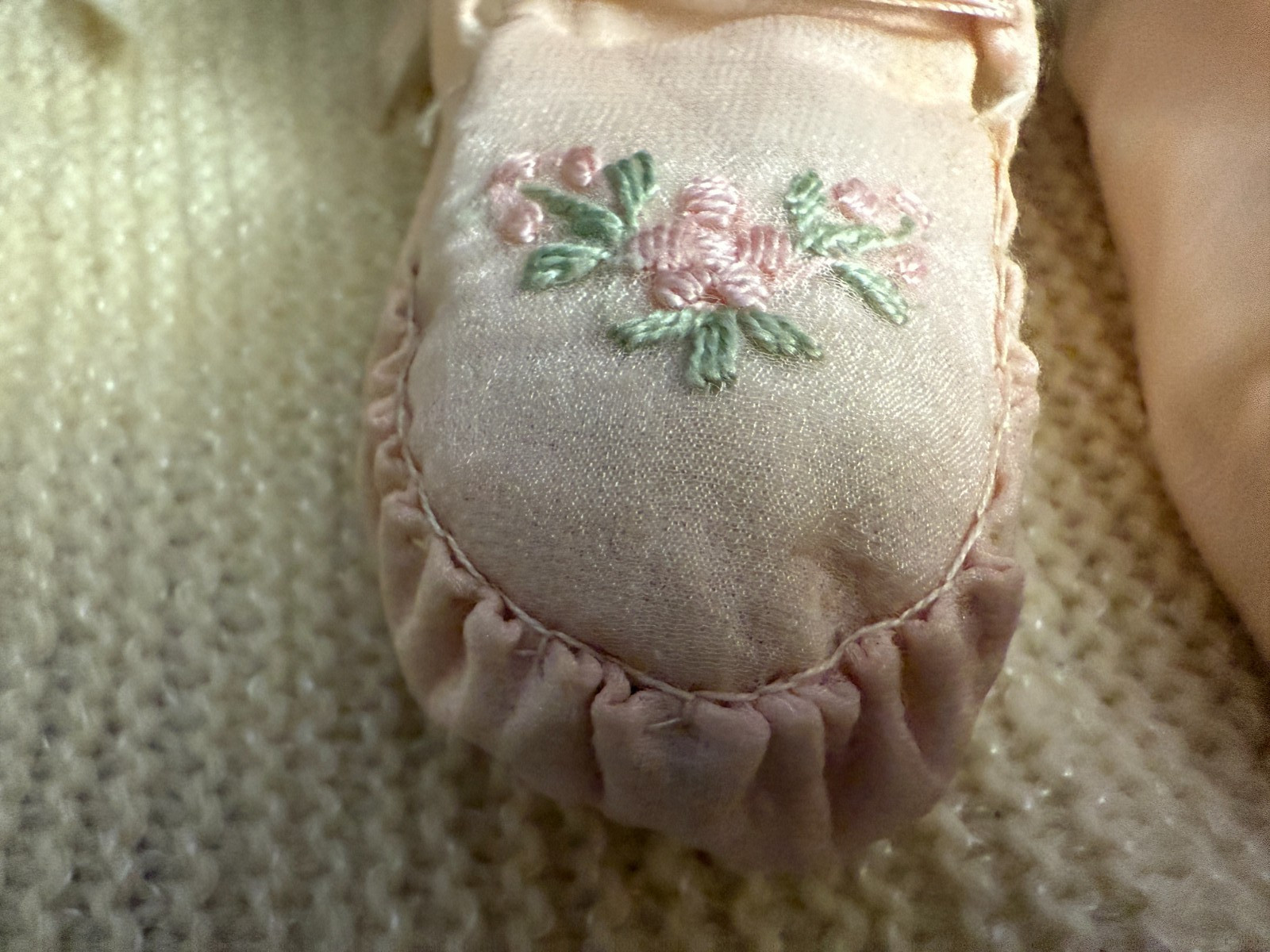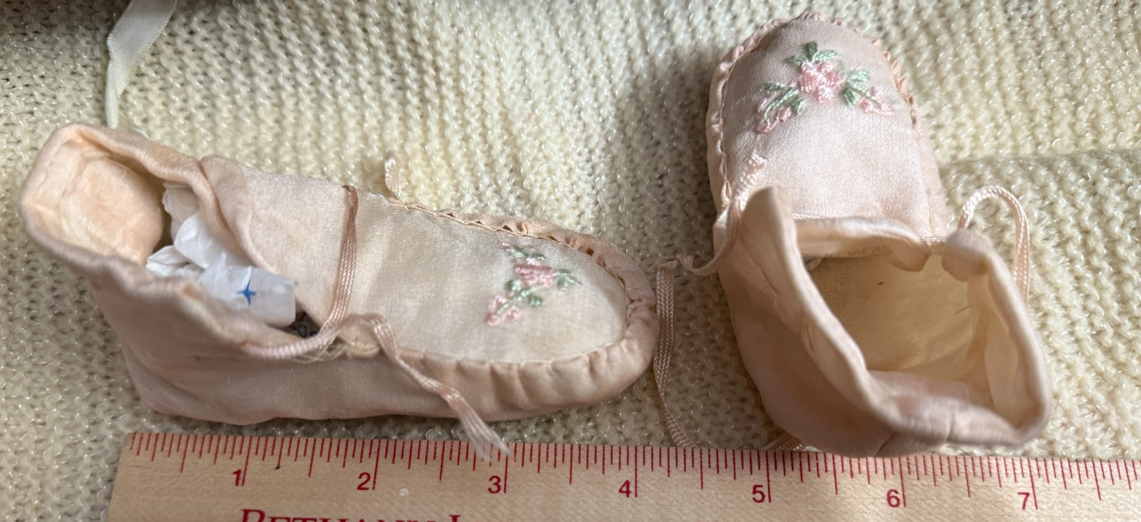 как выглядит VINTAGE PINK SATIN BABY/ DOLL BOOTIES фото