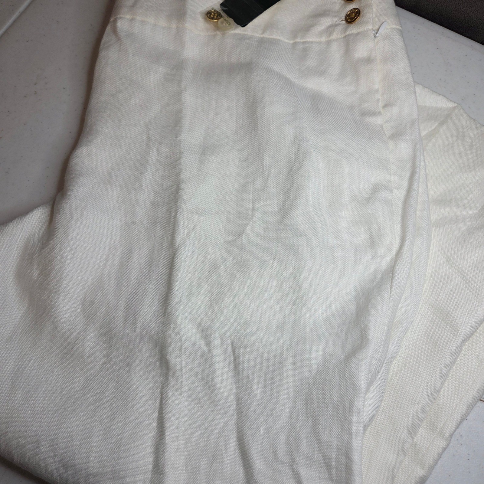 как выглядит NWT Lauren Ralph Lauren "The Cliffs" Ivory 100 Linen Wide Leg Pants Size 16W фото