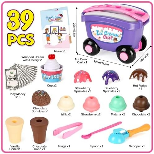 как выглядит Kids Ice Cream Cart Pretend Play Food Toy Set фото