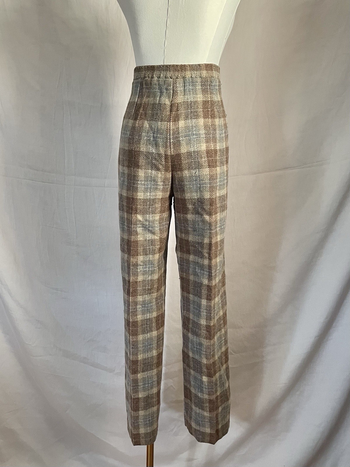 Vintage Plaid Wool Pants 1970s Women s Size 10 Beige Tan High Waist Lined Large