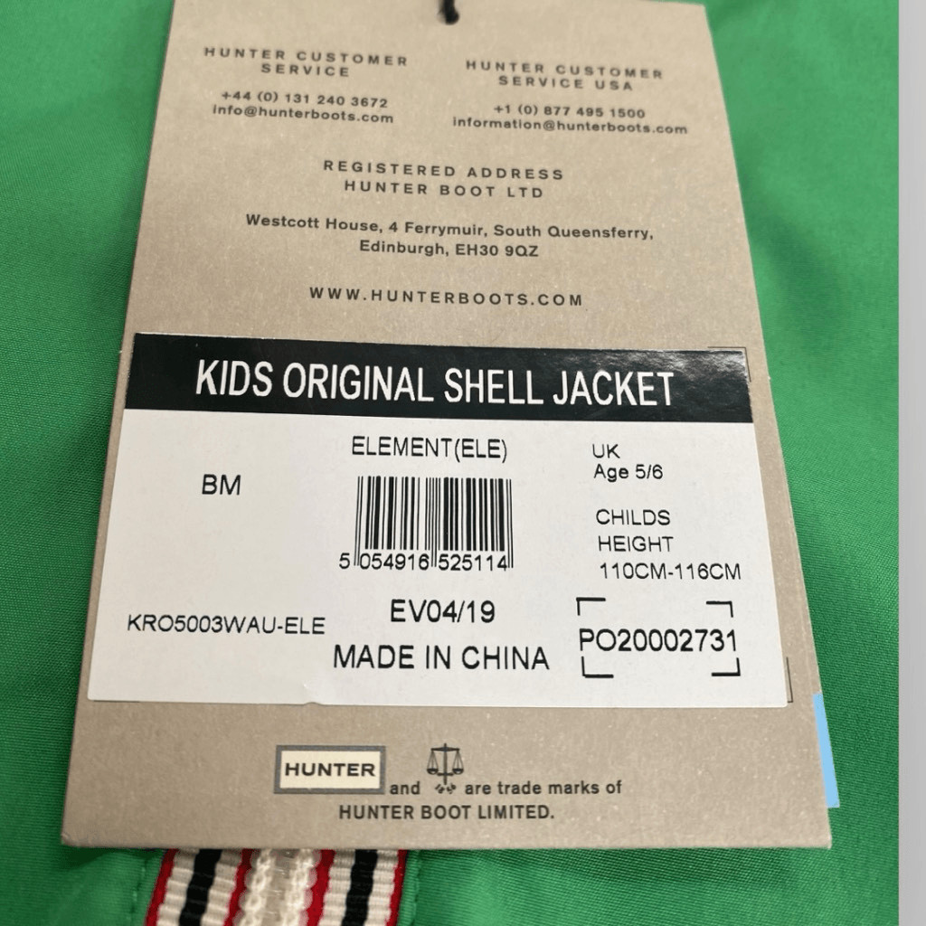 HUNTER Original Packable Shell Element Green Hooded Jacket Kids size Age 5-6 New