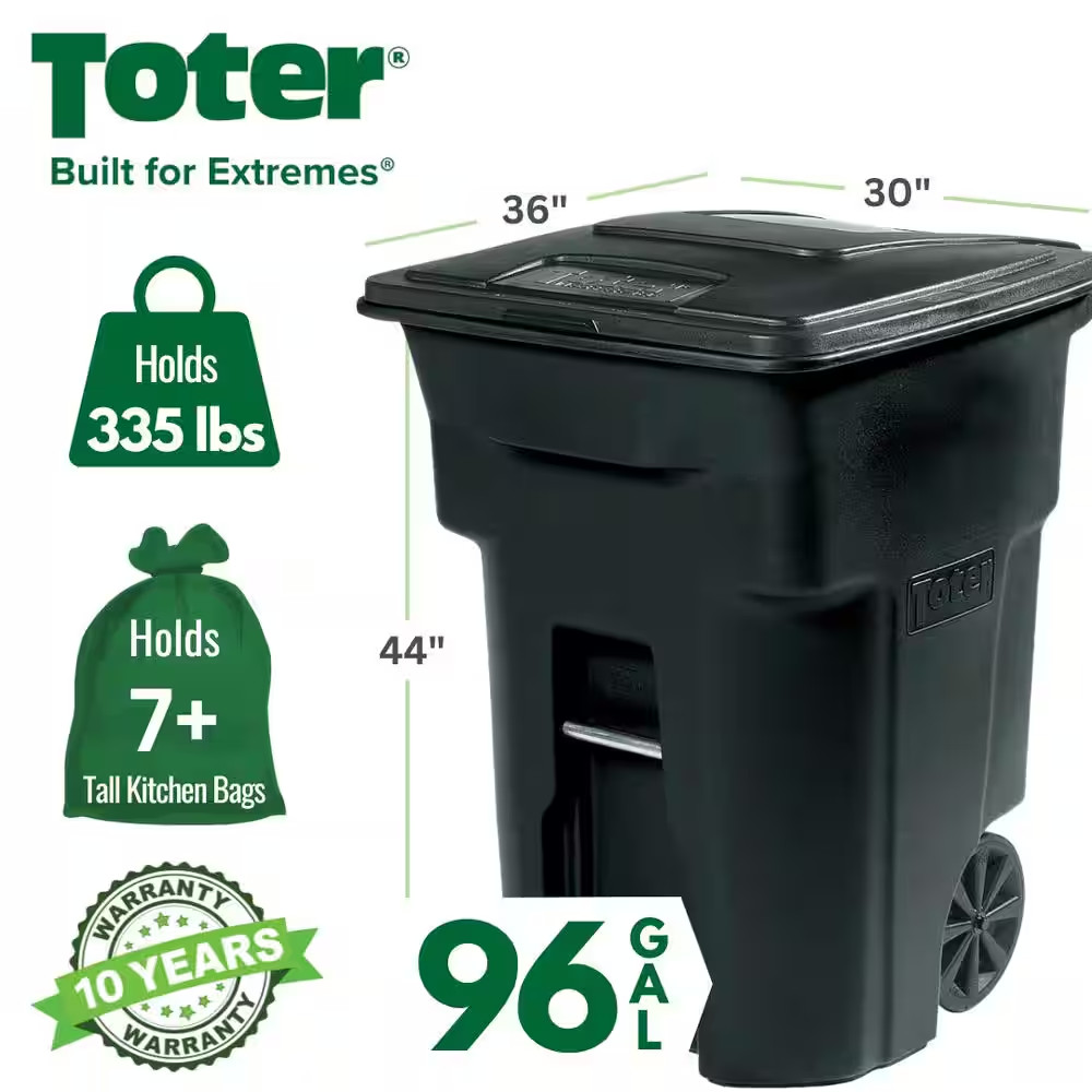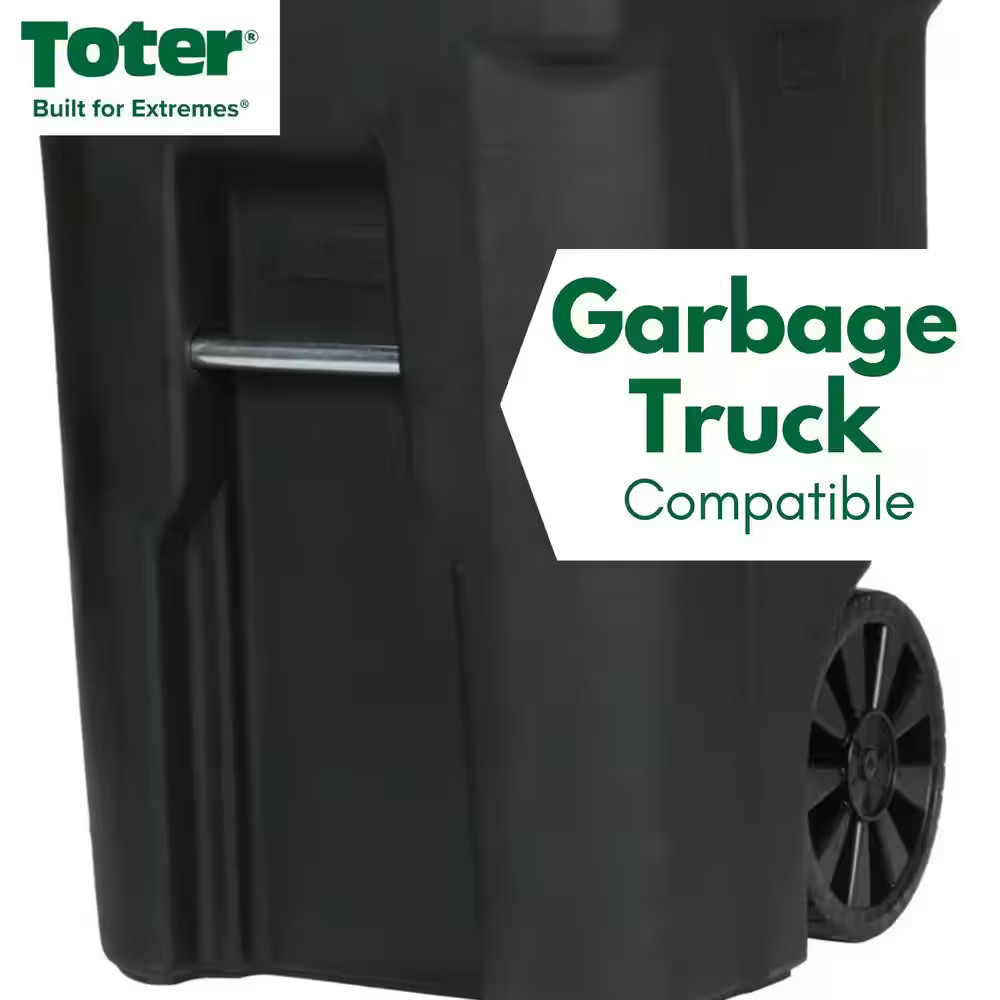 96 Gallon Black Rolling Outdoor Garbage/Trash Can with Wheels and Attached Lid
