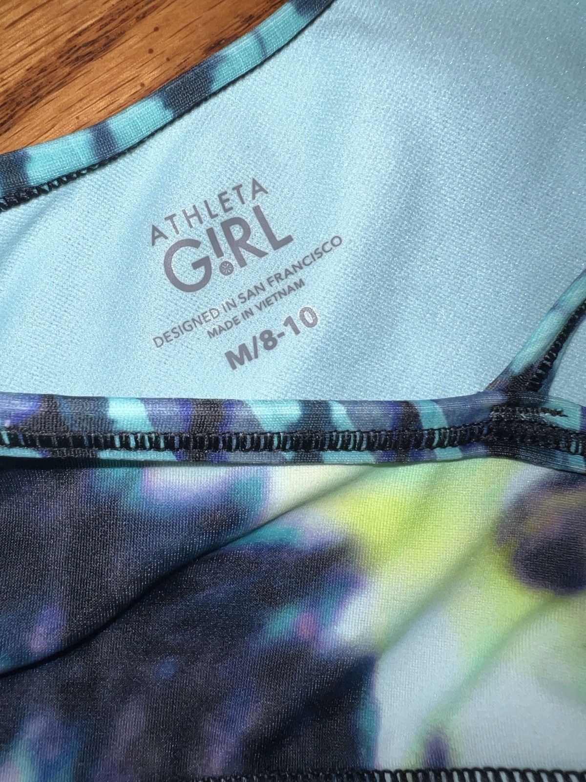 как выглядит Athleta Girl Palm Tie Dye Tankini Girls Size M/8-10 Swim Top colorful фото