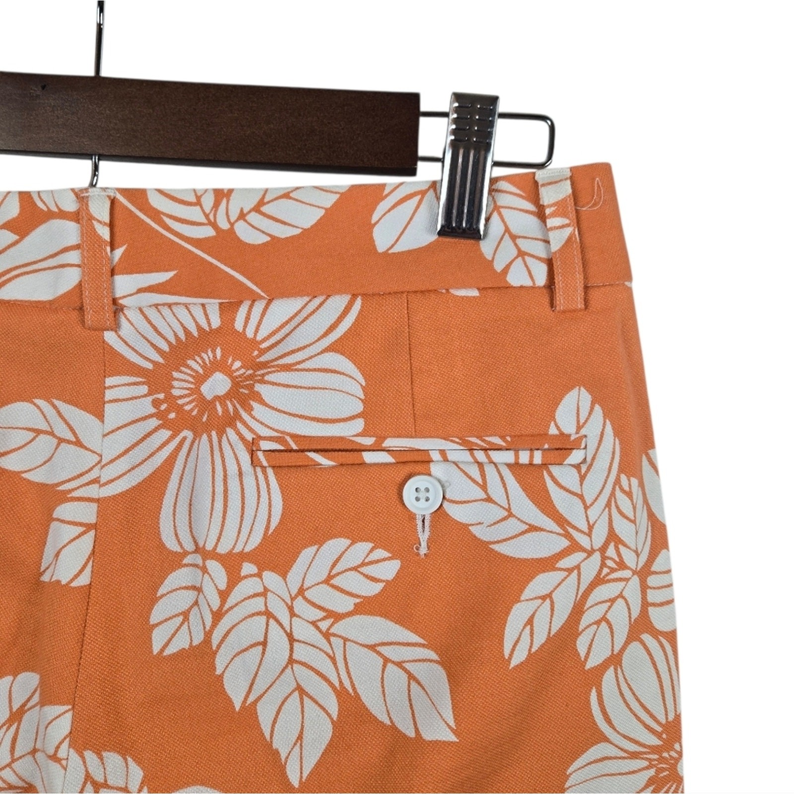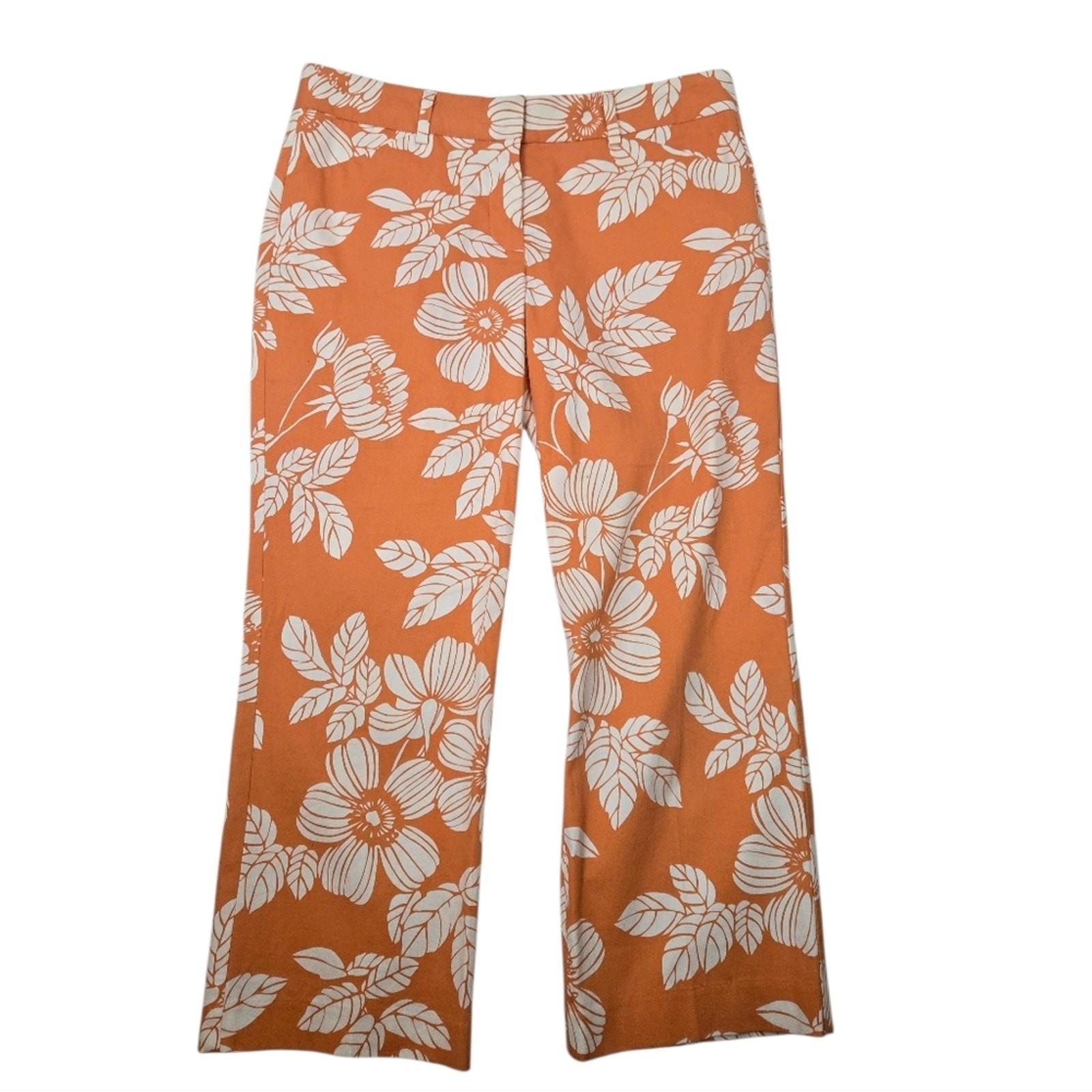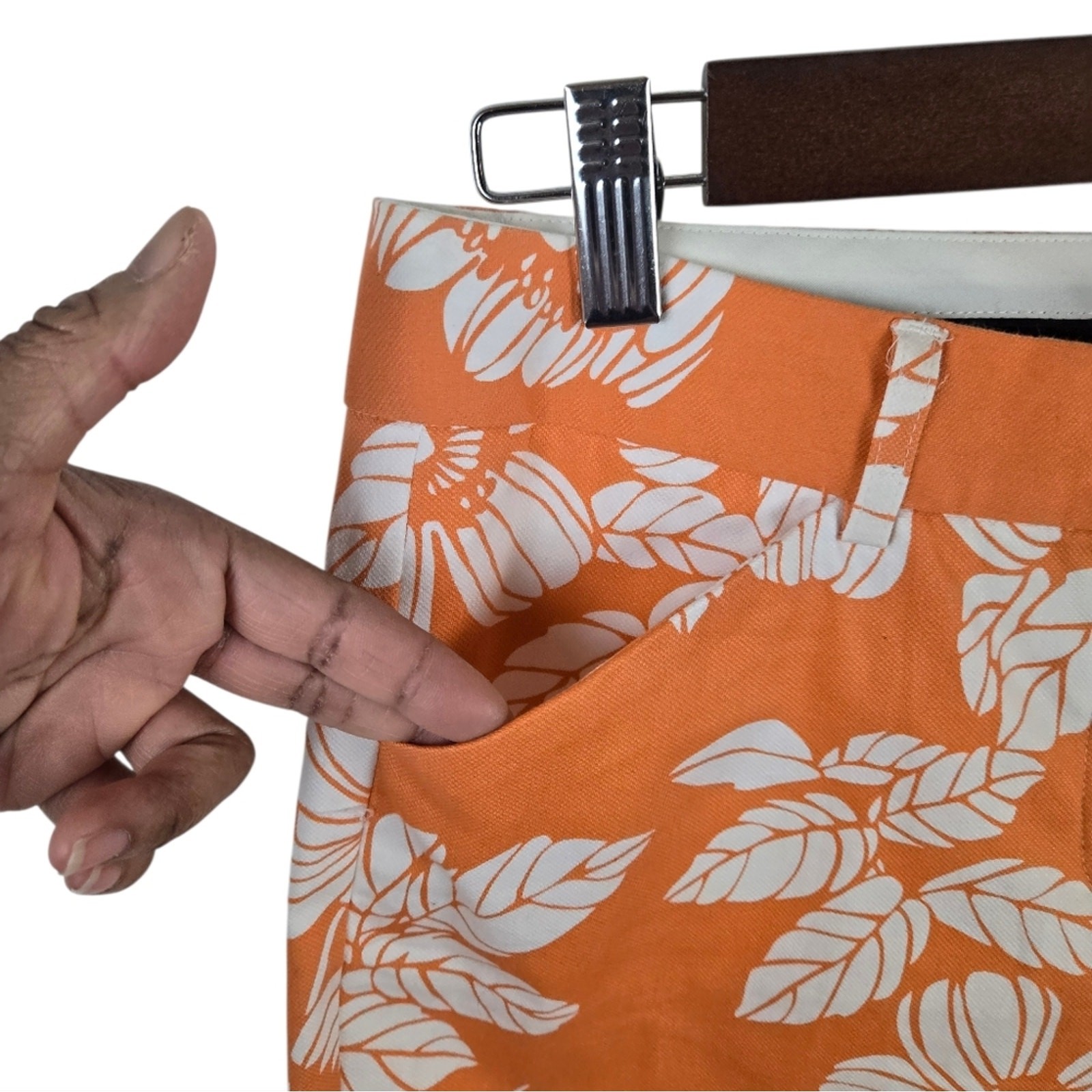 как выглядит Express Orange and White Floral Cropped Capri Pant фото