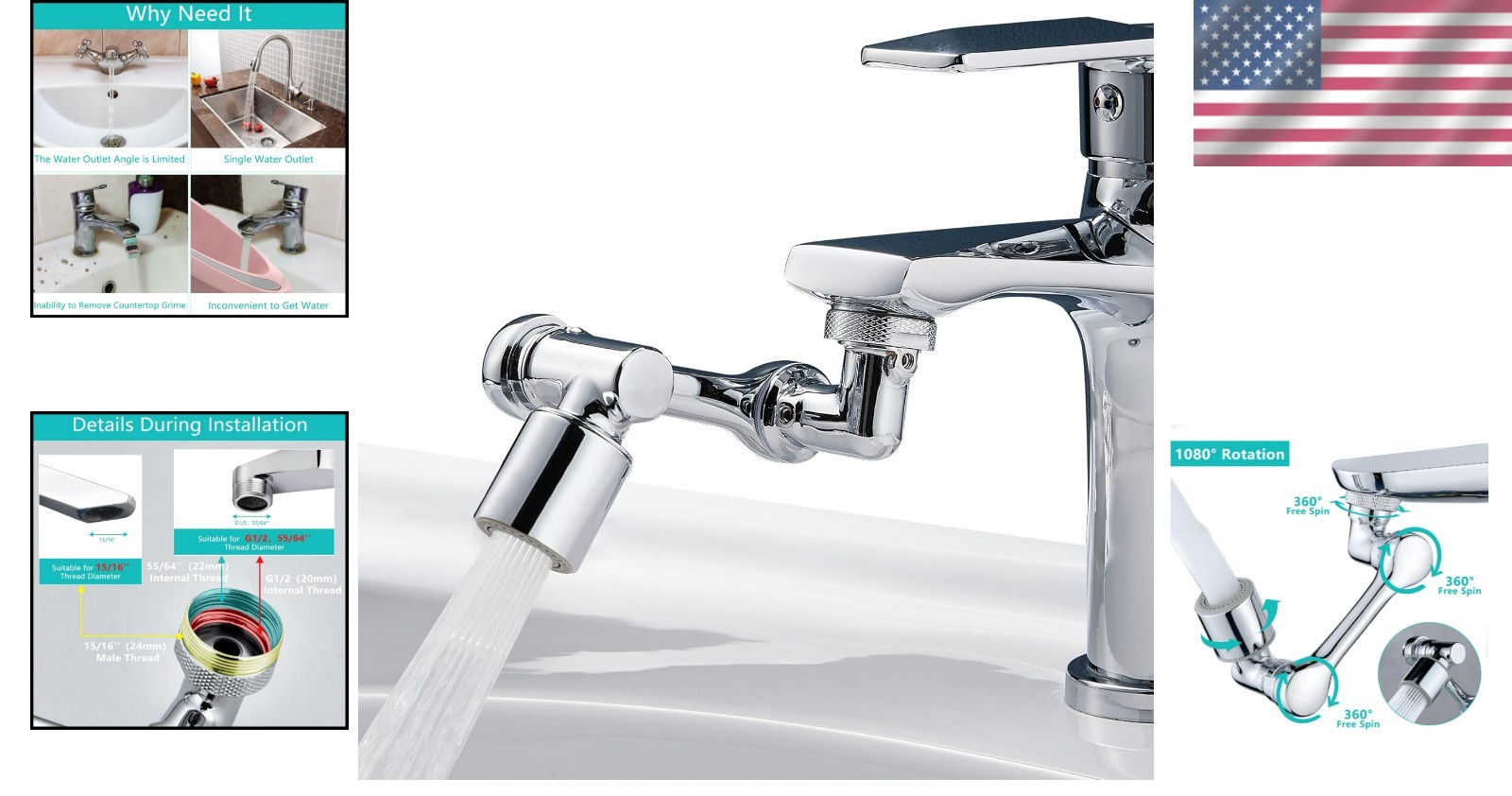 Thread Size: G1/2(20mm), 55/64''(22mm), 15/16''(24mm)