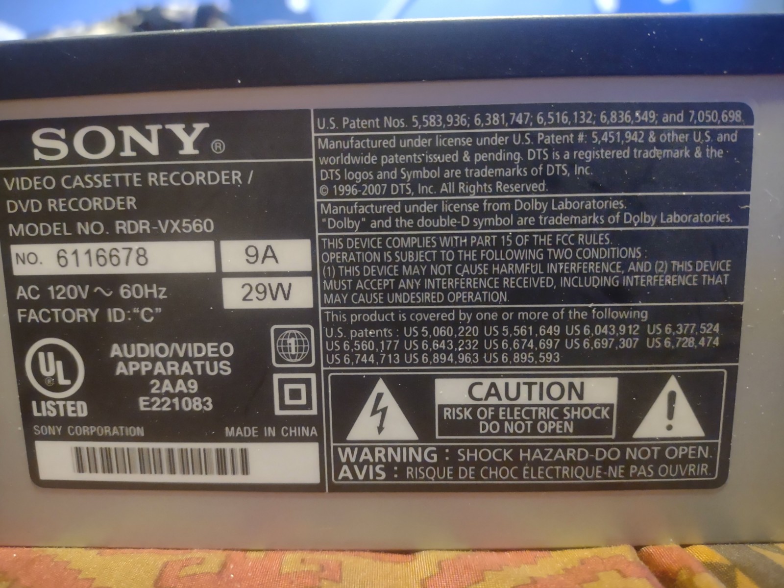 Sony RDR-VX560 VHS DVD DVD-R Recorder Combo Player HDMI No Remote Dubbing Deck