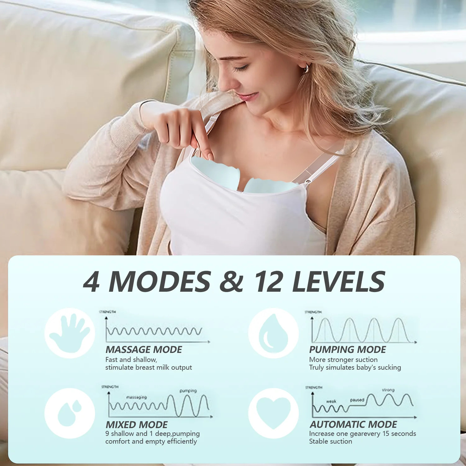 Breast Pump, Hands Free Breast Pump Portable Electric Breast Pump with 4 Modes