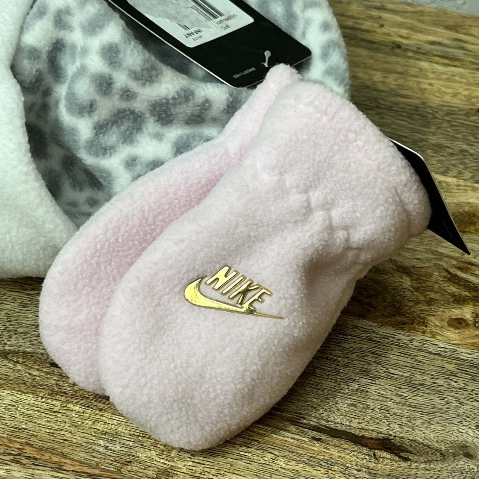 Baby Girls Nike Leopard Print Fleece Trapper Hat And Mittens Set Infants NEW