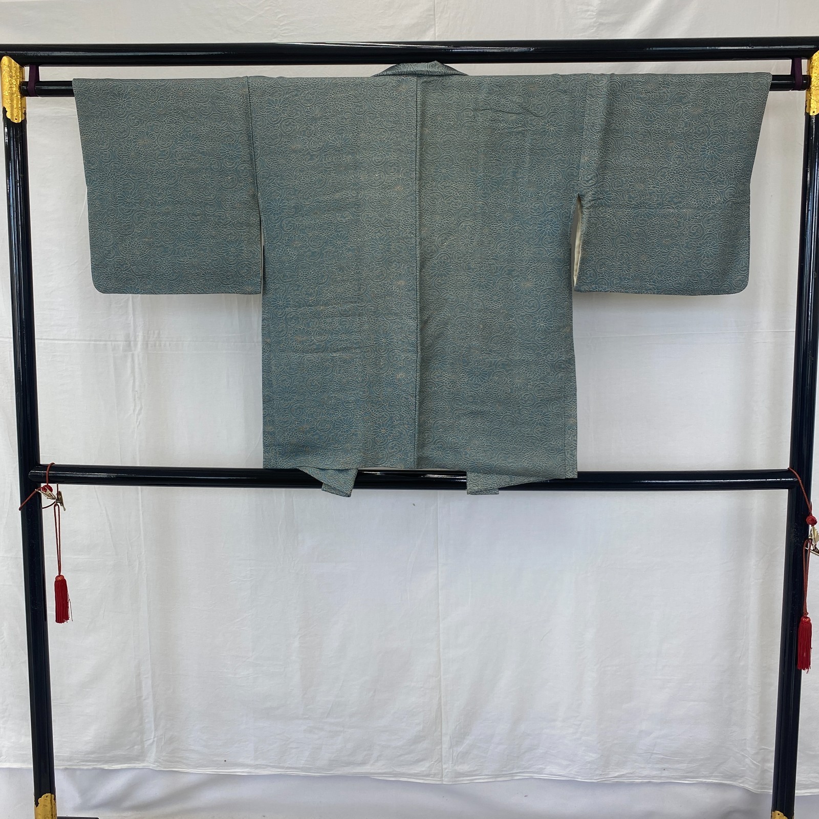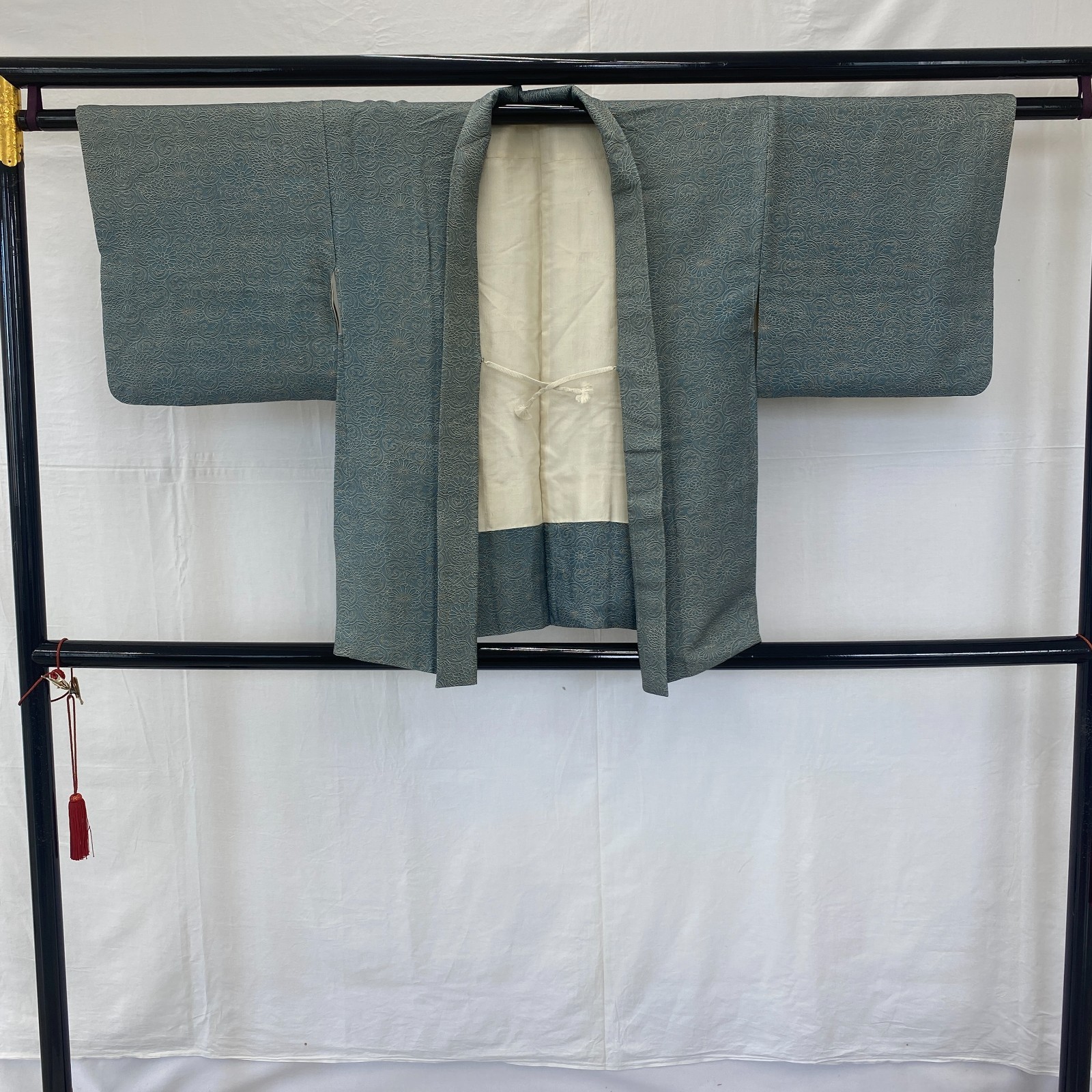 Japanese Vintage Kimono Haori Jacket Silk Green Traditional Authentic 29in