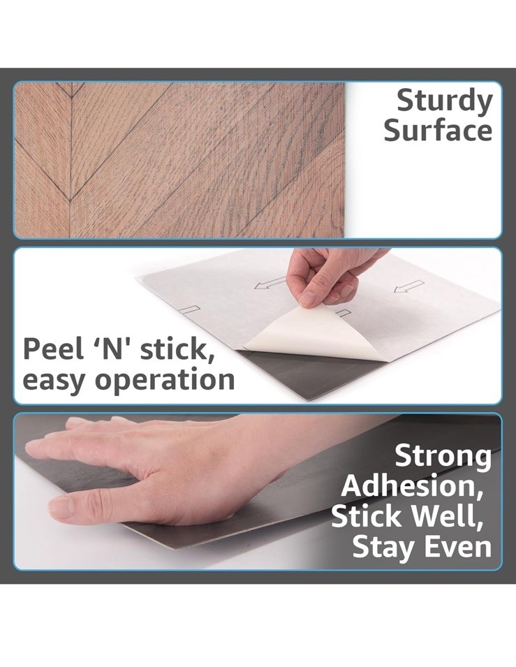 как выглядит Art3d 30-Pack Herringbone Peel and Stick Vinyl Floor Tiles,12"x12" Self Adhesive фото