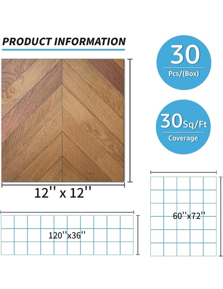 Art3d 30-Pack Herringbone Peel and Stick Vinyl Floor Tiles,12x12 Self Adhesive
