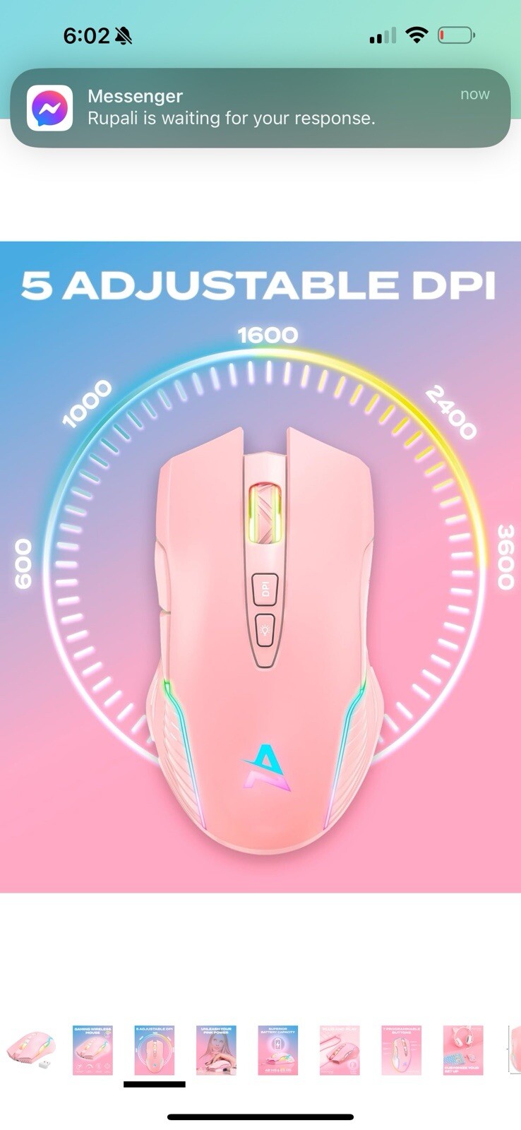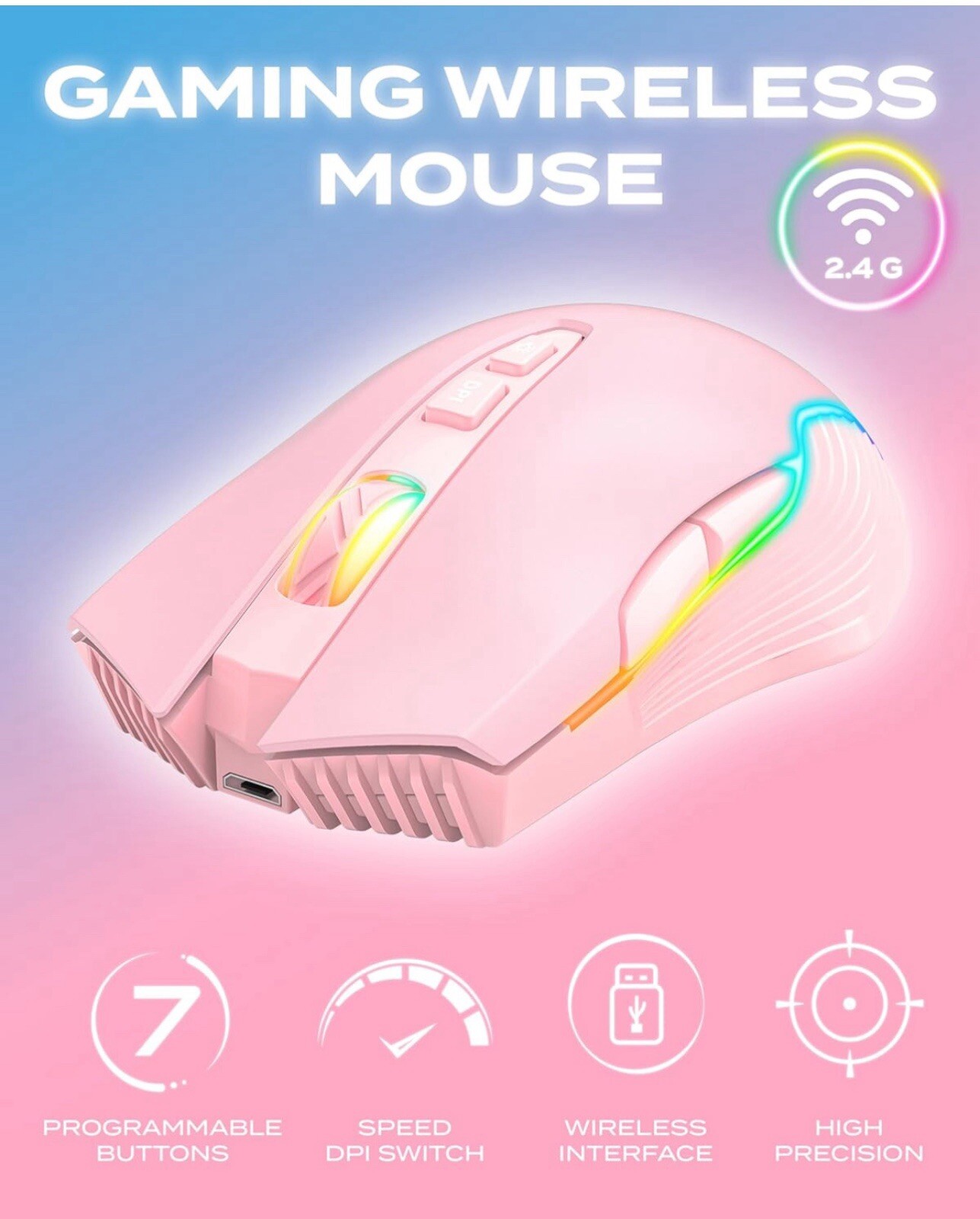 Wireless Gaming Mouse RGB Lightning 6 Gear DPI with USB Receiver Rechargeable