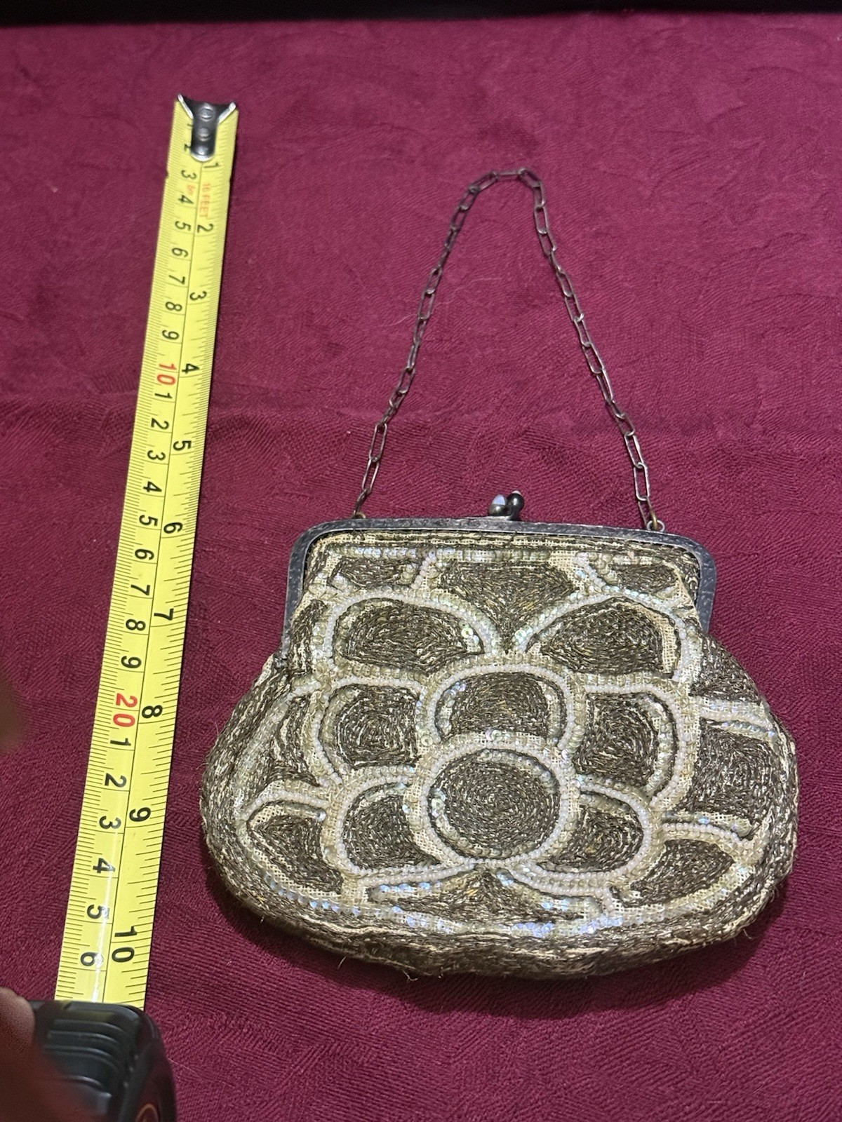 как выглядит Antique French Cut Steel Micro Bead Sequin Purse Abstract Art Deco Early 1900s фото