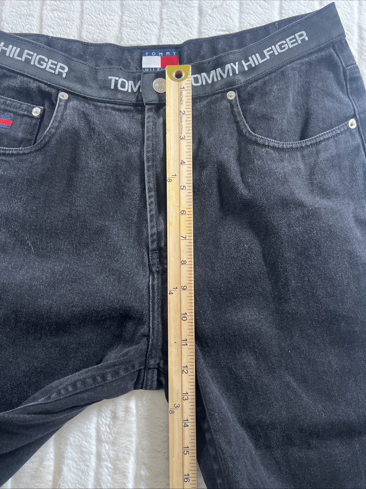Vtg 90's Tommy Hilfiger Straight Jeans Spell Out Logo Waistband Sz 12 Black
