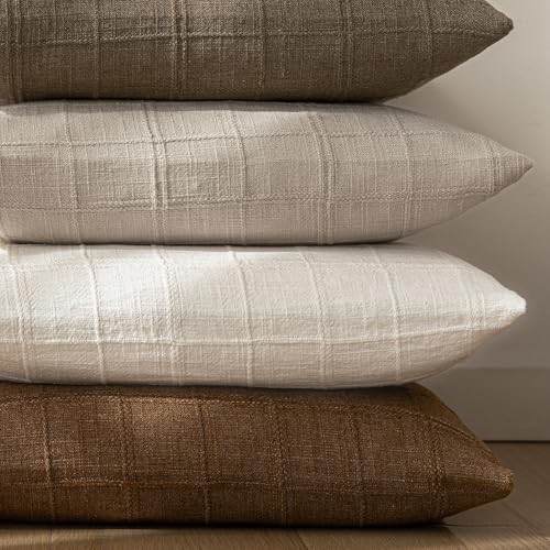 Set of 2 Decorative Linen Check Throw 20 x 20 Pack of 2 Natural Linen