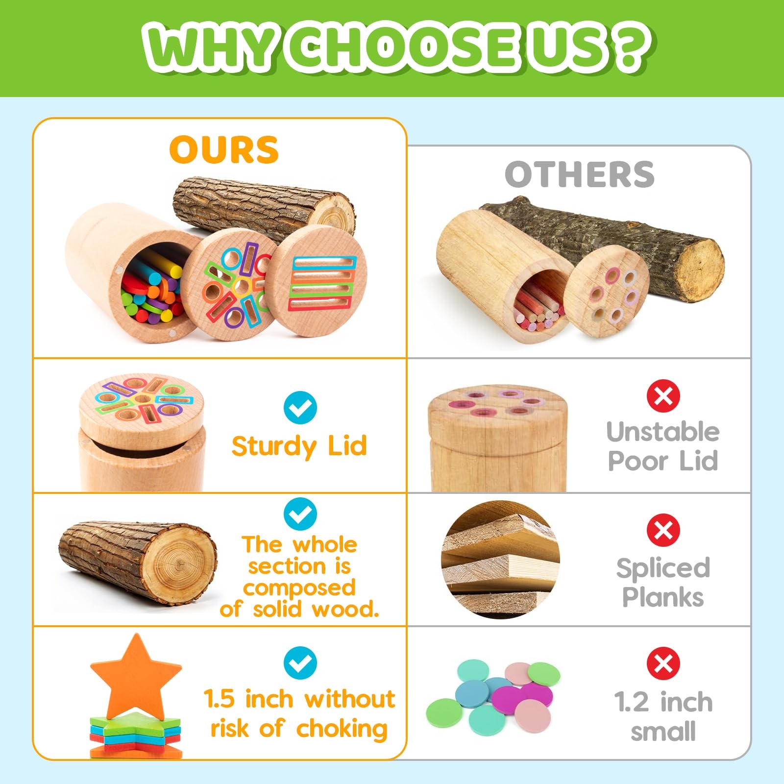 Montessori Wooden Toddler Toys 3-in-1 Fine Motor Skills Small, Multicolor