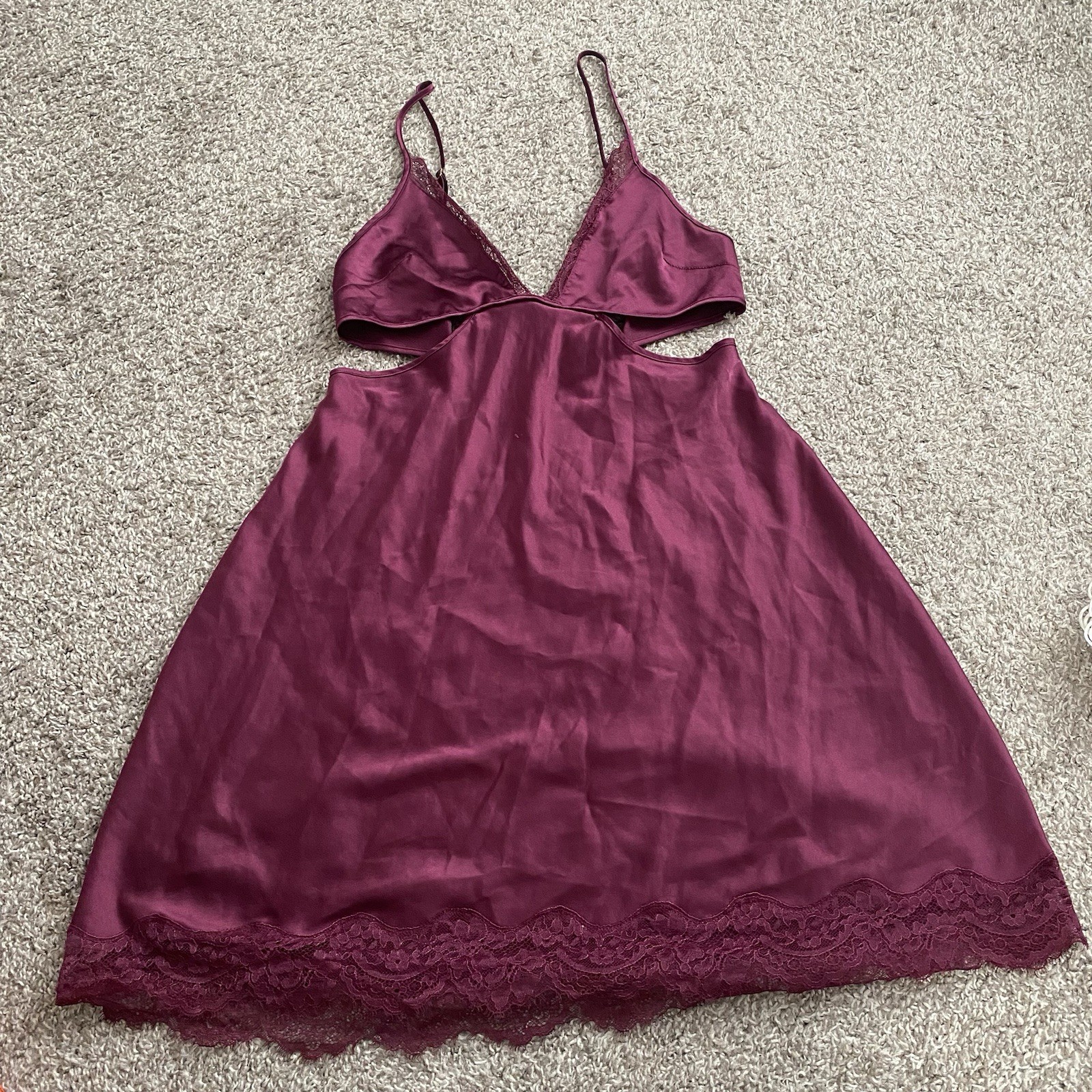 Victorias Secret Purple Lingerie Satin Slip Dress With Cut Outs Size Medium