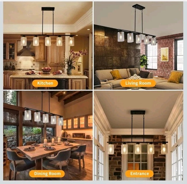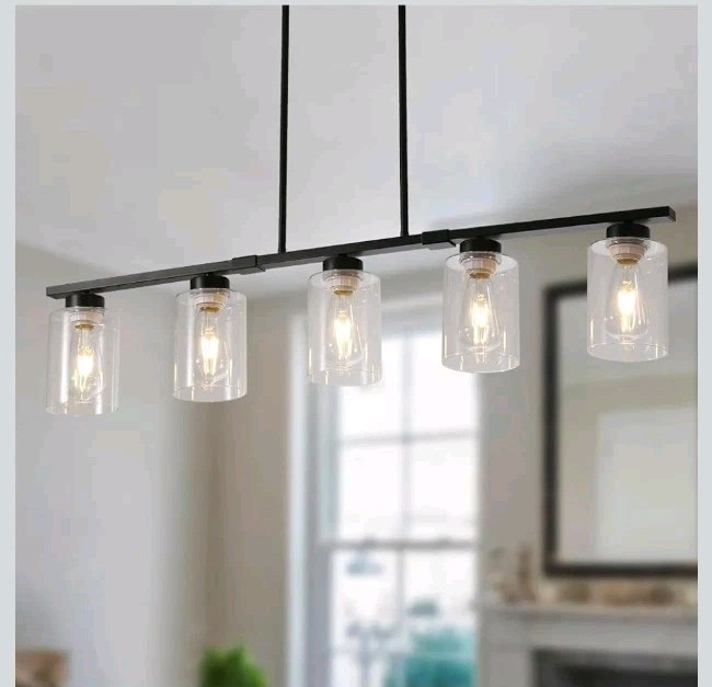 Black Kitchen Island Light Fixtures, Rectangle Dining Room Chandelier Linear...