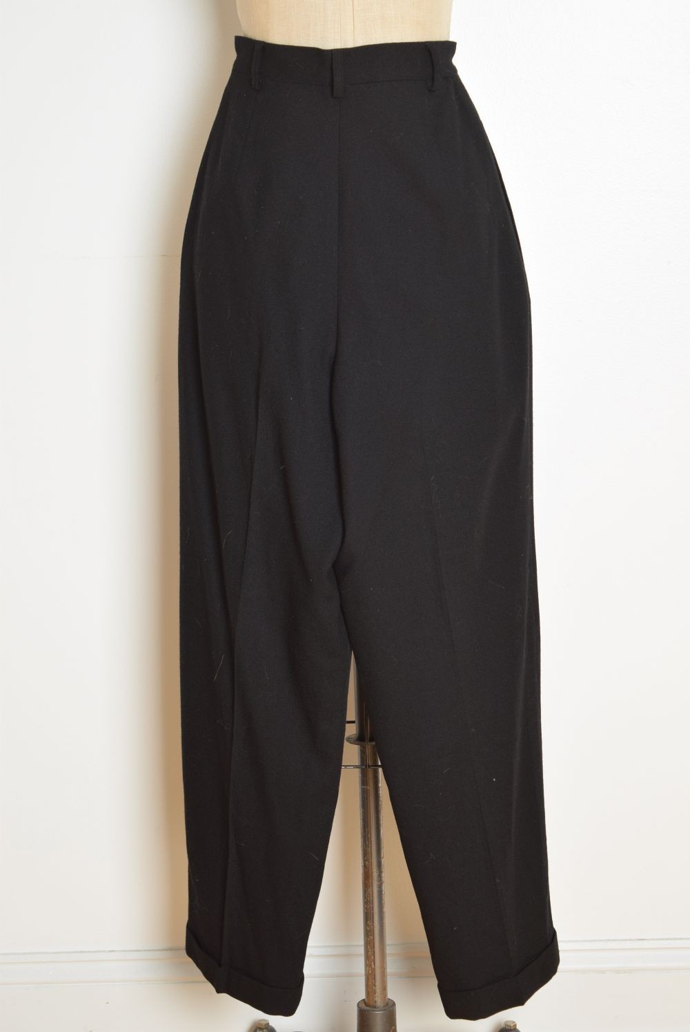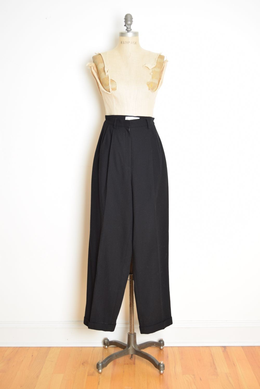 vintage Y2K pants black wool high waisted rise pleated trousers slacks XS S