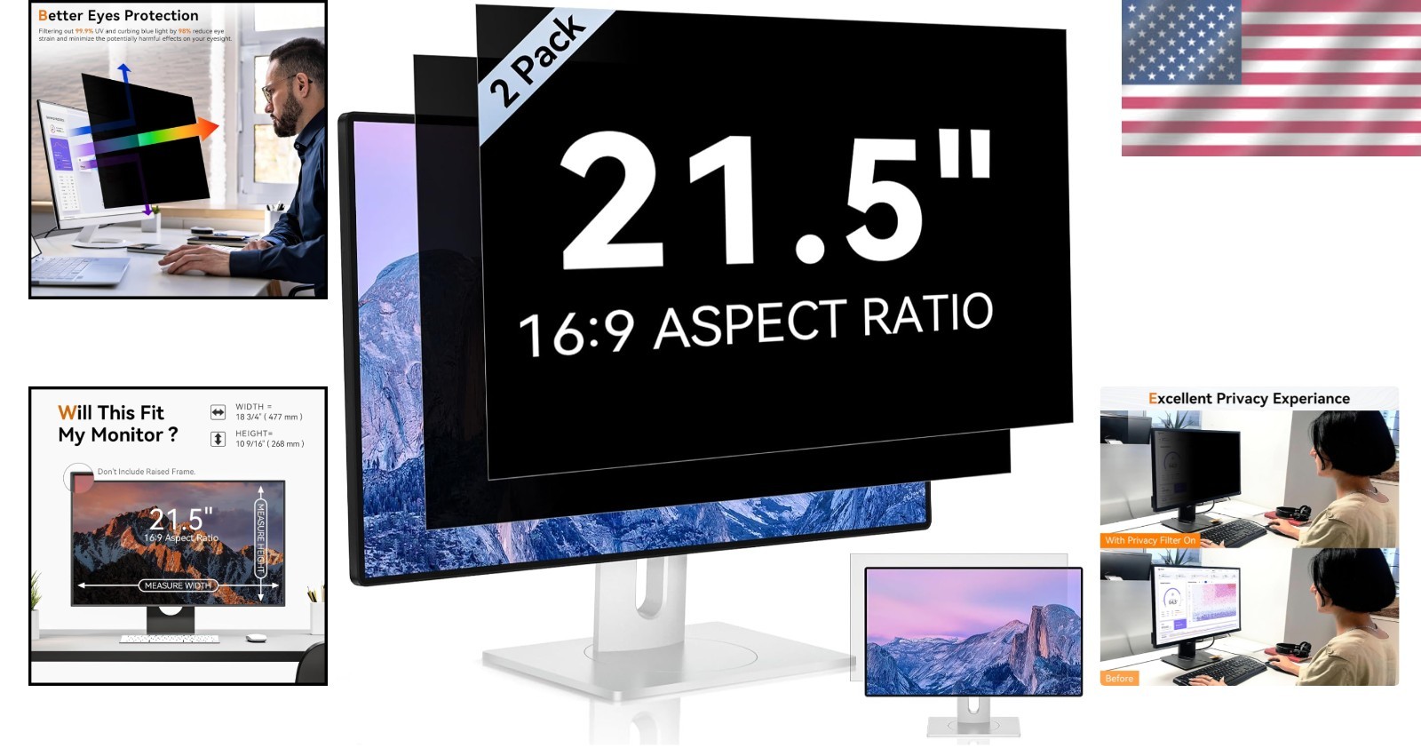 2-Pack 21.5 Inch Matte Anti-Glare Monitor Privacy Filter for Confidentiality