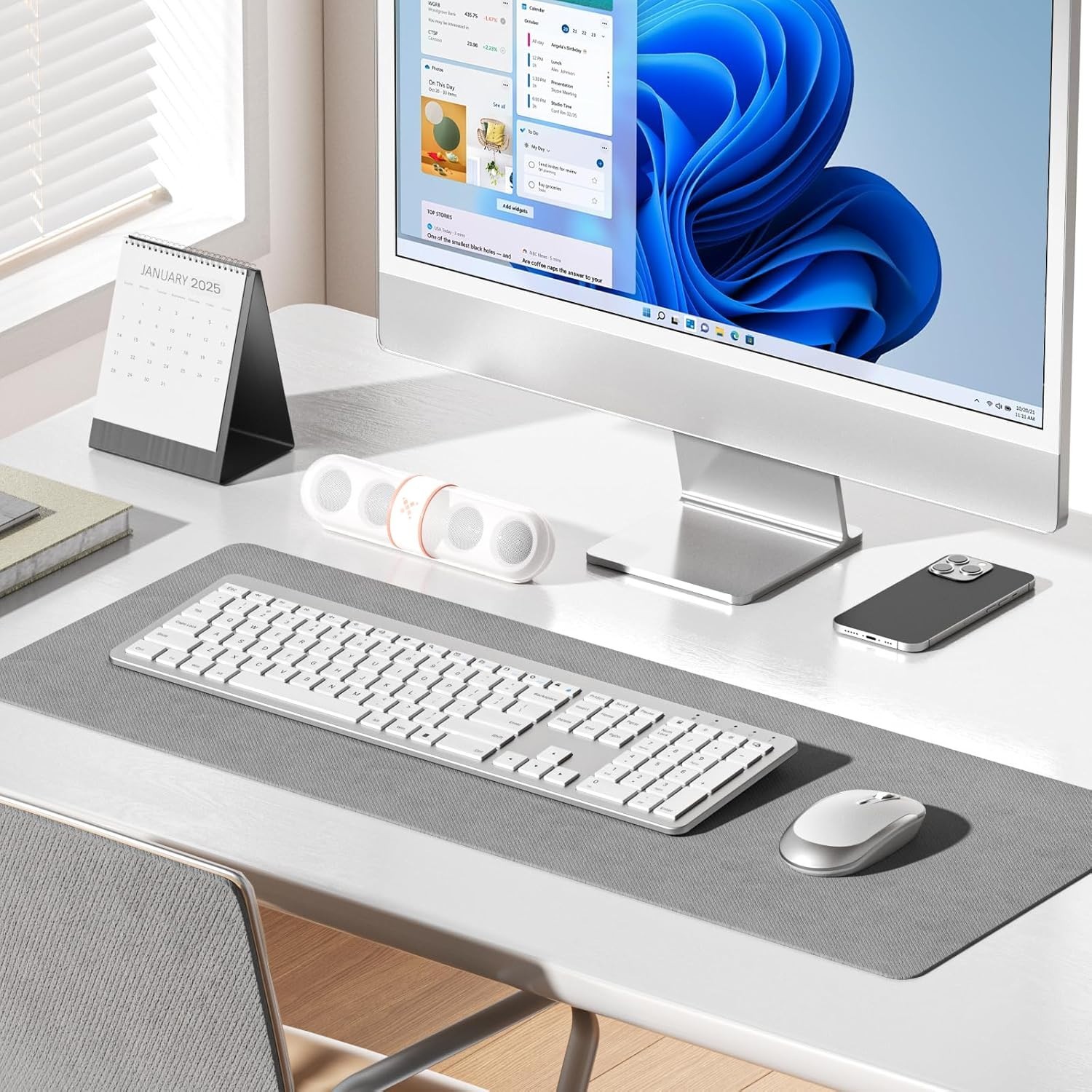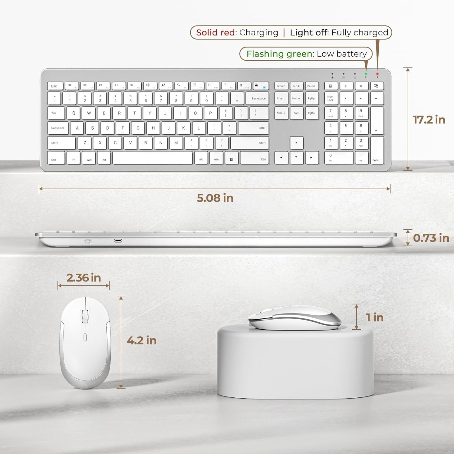Rechargeable Full-Size Wireless Keyboard and Mouse - Modern Silver White Combo