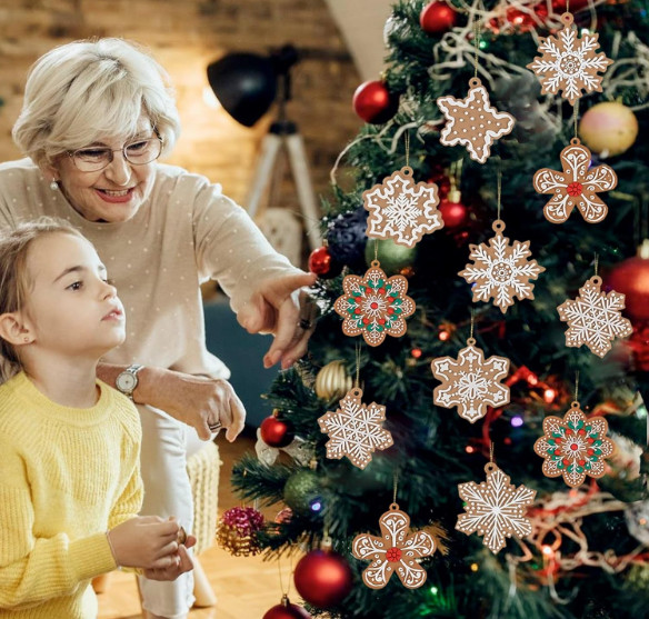 12PCS Gingerbread Snowflake Ornaments Rustic Brown Christmas Tree Decor