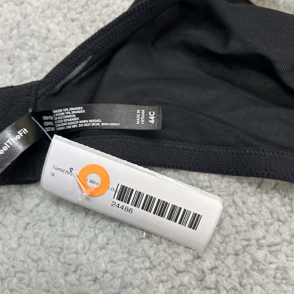 Torrid Bra 44C Wireless Dream Wire-Free Boost Black Lace