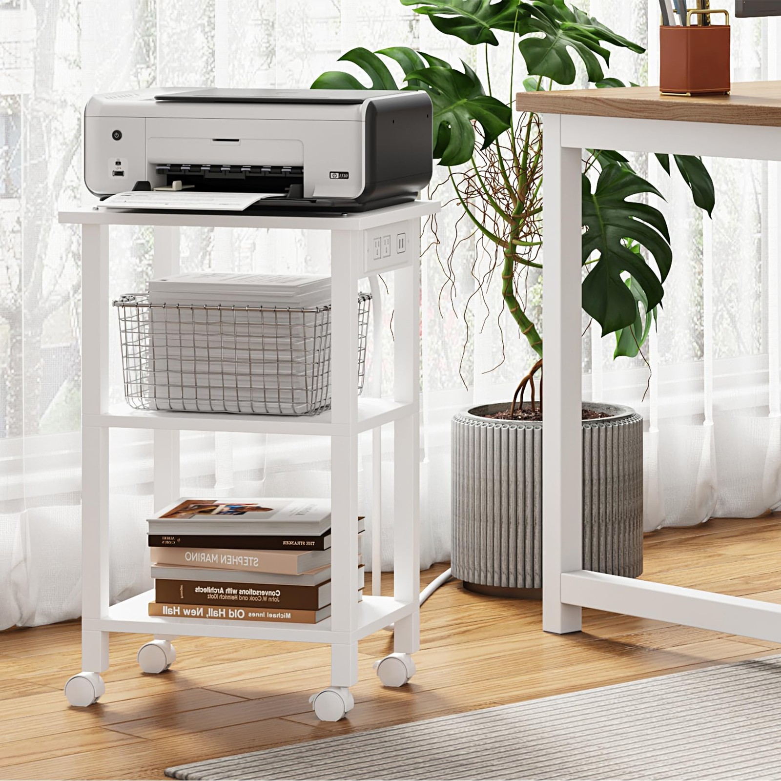 3-Tier Rolling Printer Stand with Power Outlets USB Ports, Mobile Cart