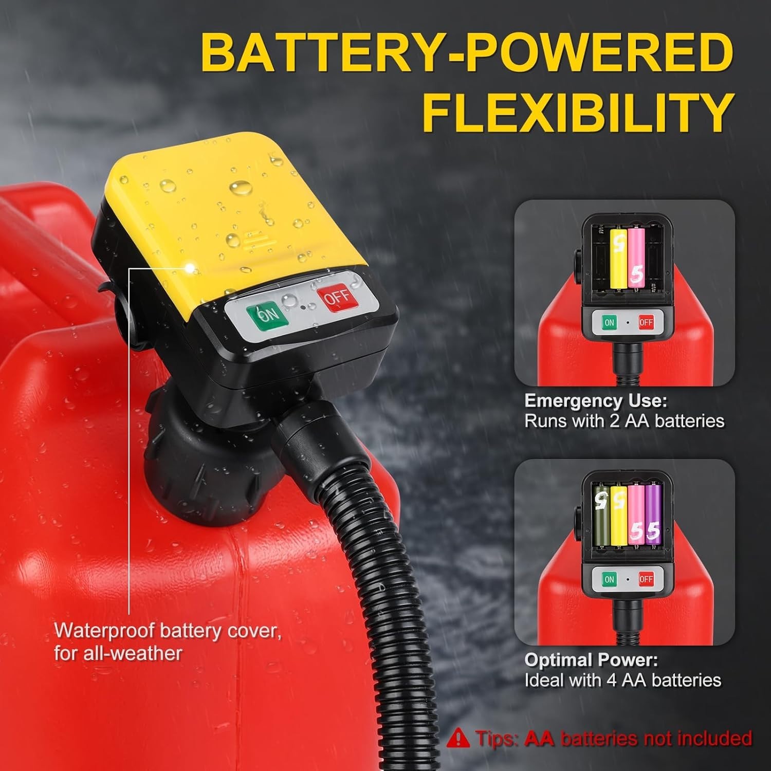 Battery-Powered Fuel Transfer Pump with Auto-Stop Sensor 4 Adapters - 3.2GPM