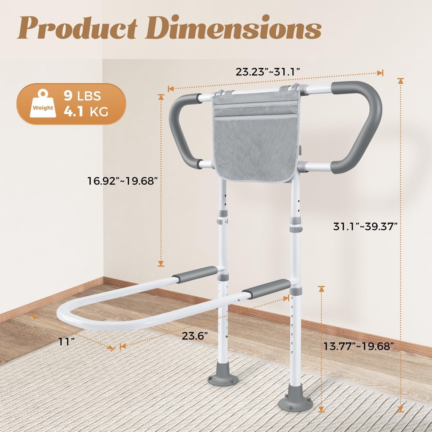 Adjustable Bedside Assist Rails with Storage Pockets 400LB Capacity