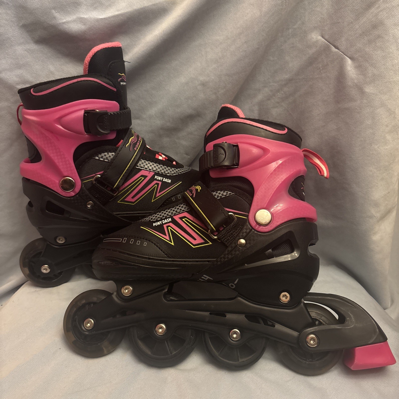 Kids Size Med, Adjustable Inline Skates LED Light Up Wheels Pink Black