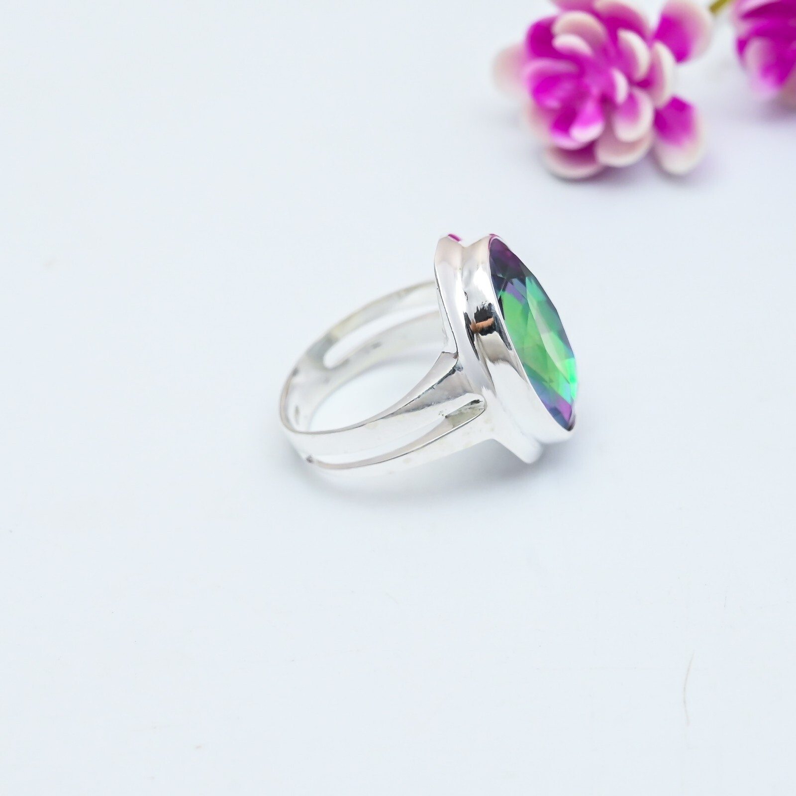 как выглядит Beautiful Mystic Topaz Gemstone Handmade 925 Sterling Silver Jewelry Ring Gifts фото