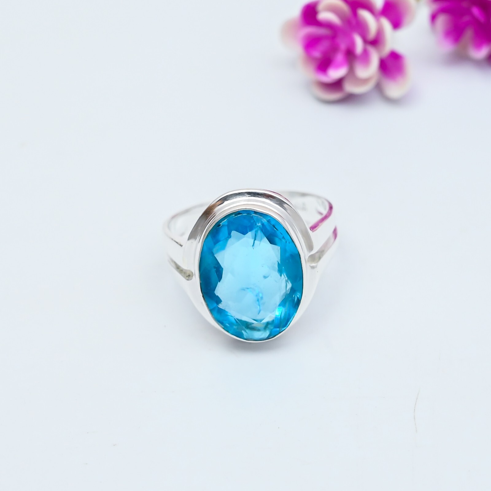 как выглядит Swiss Blue Topaz Gemstone Statement Ring 925 Sterling Silver Handmade Jewelry фото