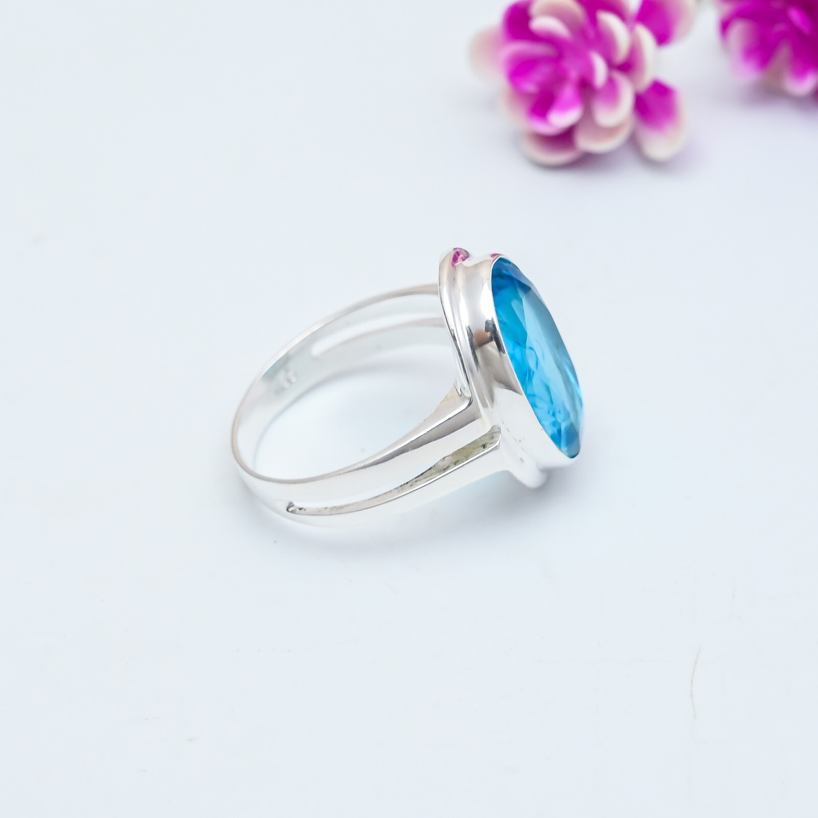 Swiss Blue Topaz Gemstone Statement Ring 925 Sterling Silver Handmade Jewelry