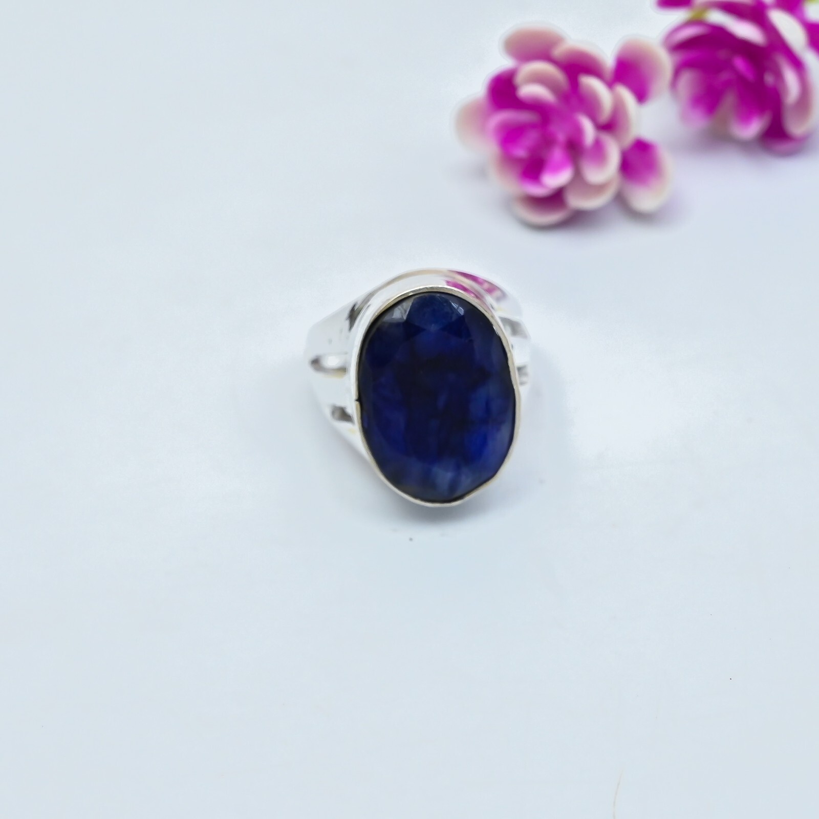 Blue Sapphire Lab-Created Handmade Ring 925 Sterling Silver Ethnic Jewelry Rings