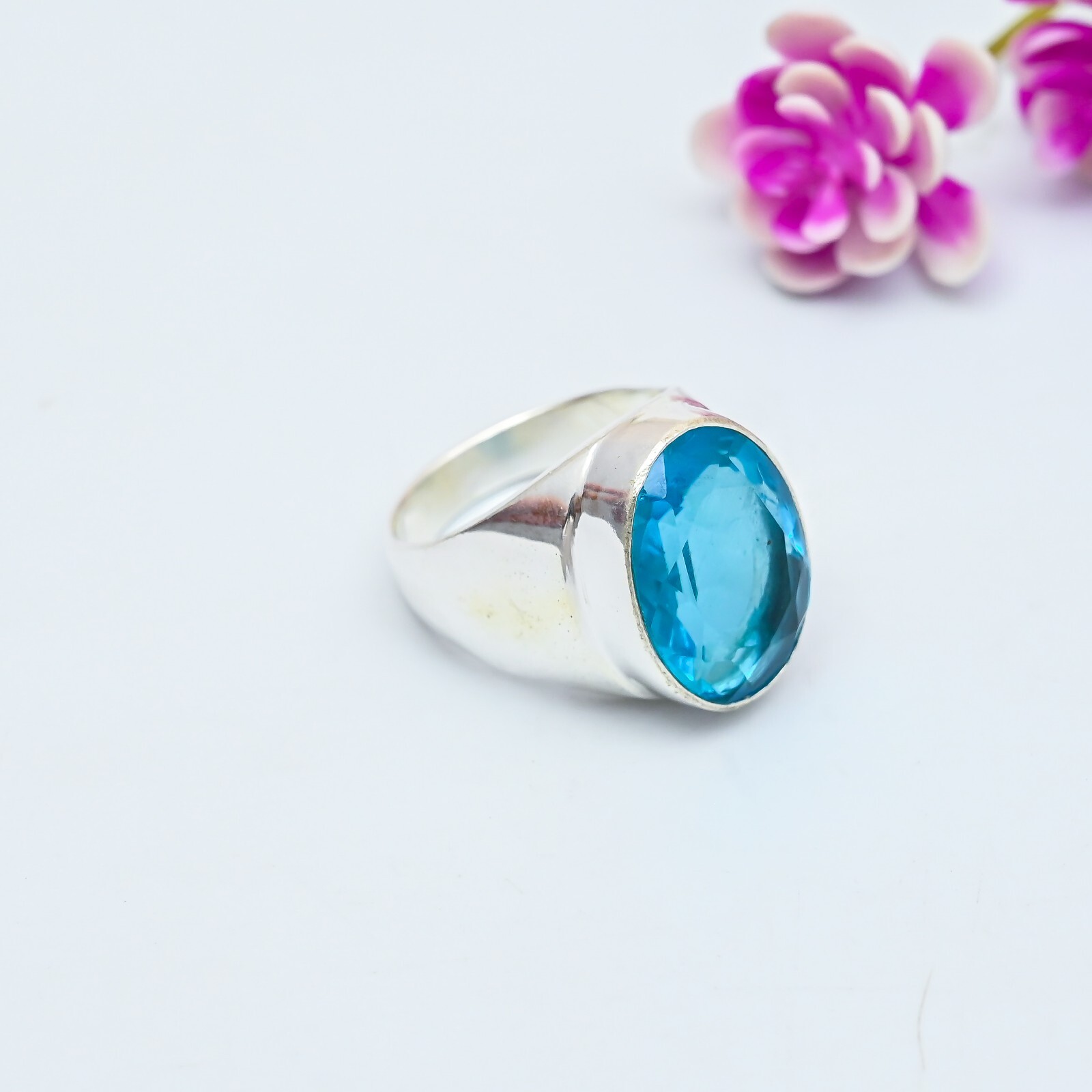 London Blue Topaz Gemstone 925 Sterling Silver Jewelry Handmade Engagement Rings