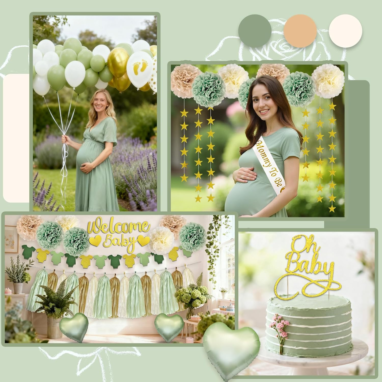 Тема: Baby Shower, Sage Green