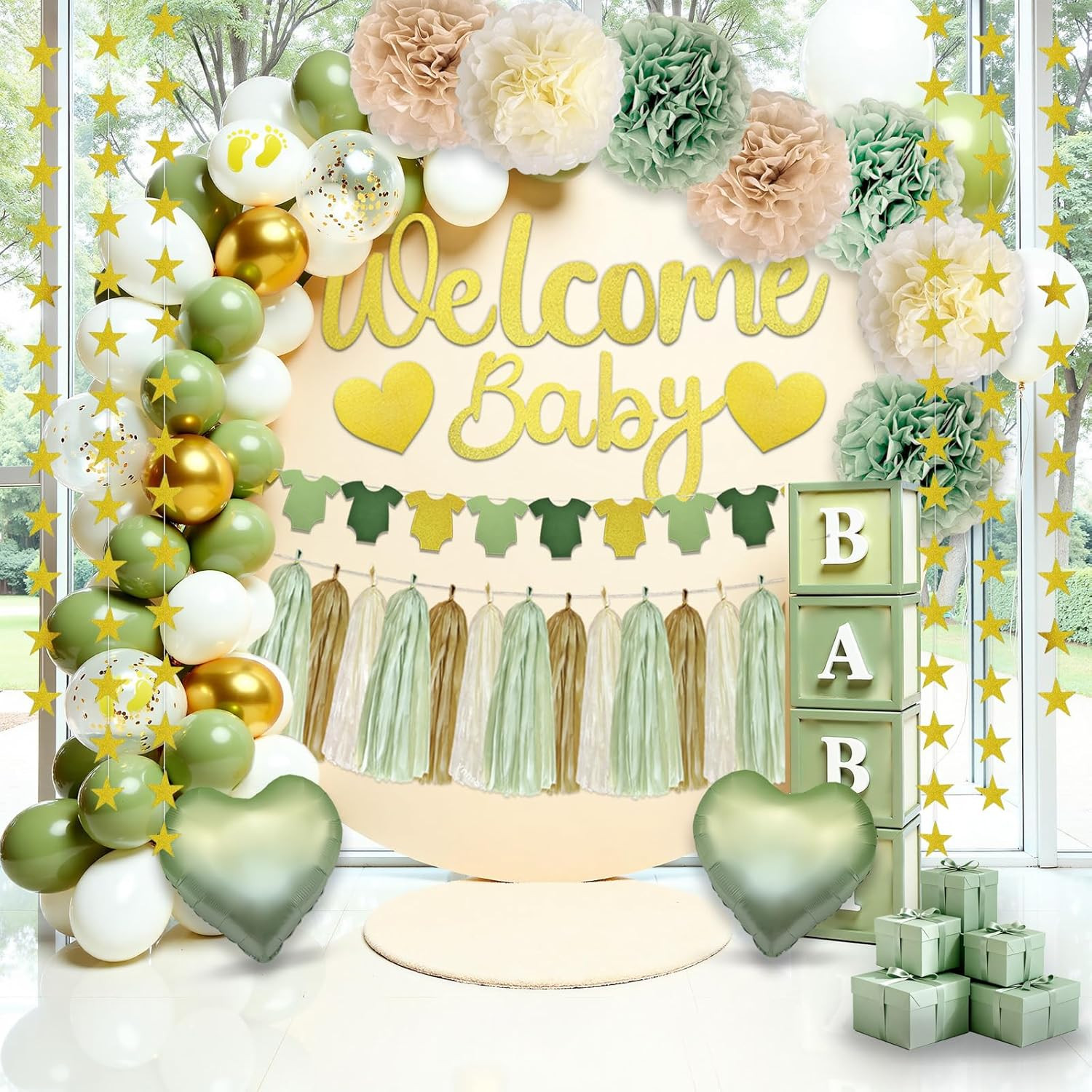 73PCS Sage Green Baby Shower Decorations Neutral Kit Gender Neutral Baby Showe