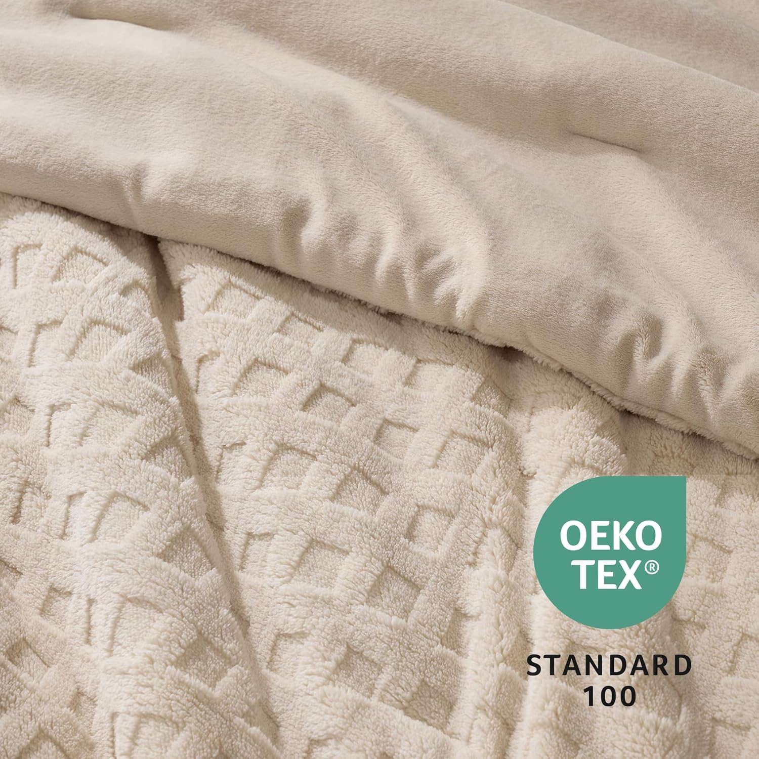 Waffle Comforter King Size Set, Khaki Fleece Beding Set, Fluffy Plush Bedding Se