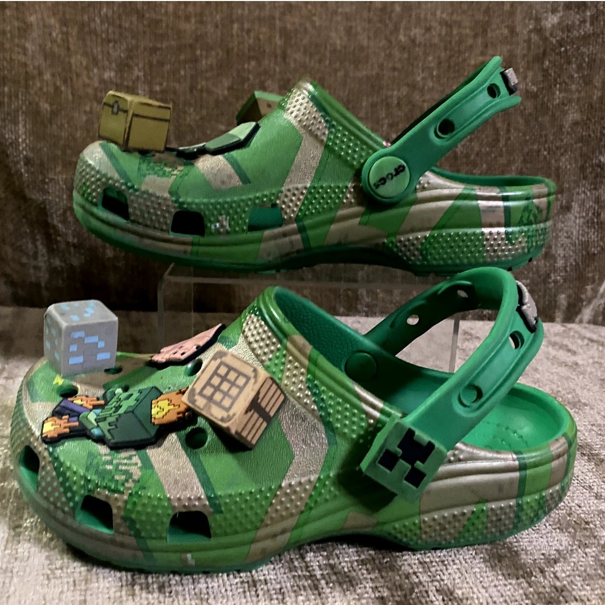 Minecraft Crocs C13 Kids Classic Clog w/ Jibbitz Charms Green Creeper Edition