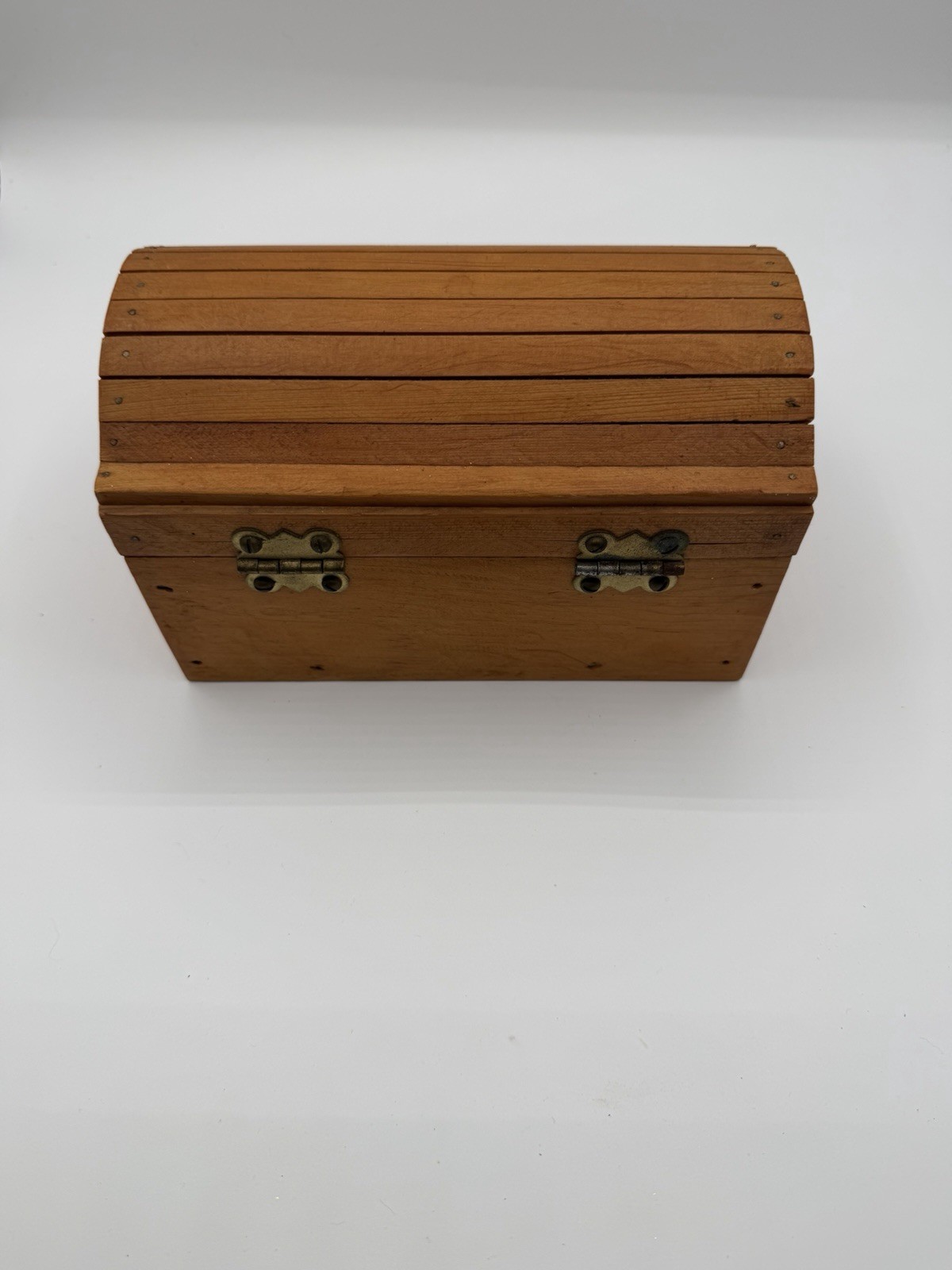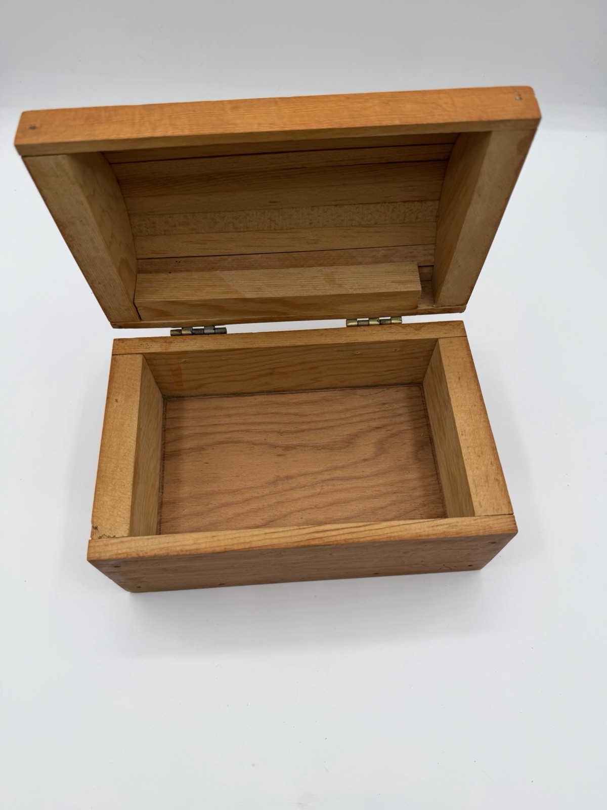 • Vintage Wooden Storage Box Hinged Lid Solid Wood Handmade Style