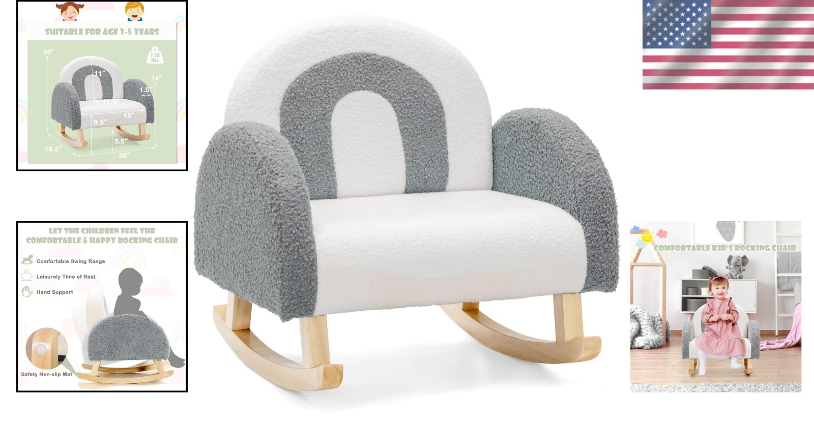 как выглядит Ergonomic Toddler Rocking Chair with Solid Wood Frame - Safe Stylish Armchair фото