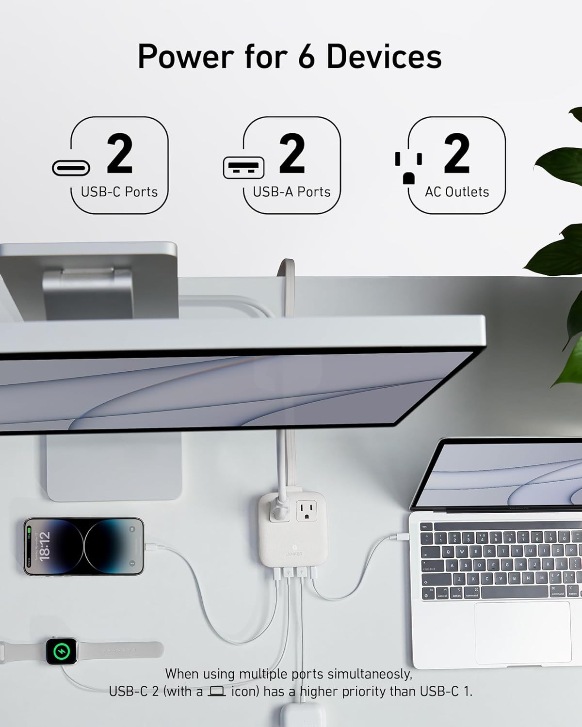 Anker Nano Charging Station 67W Max , 6-In-1 USB-C Power Strip for Iphone 16/15