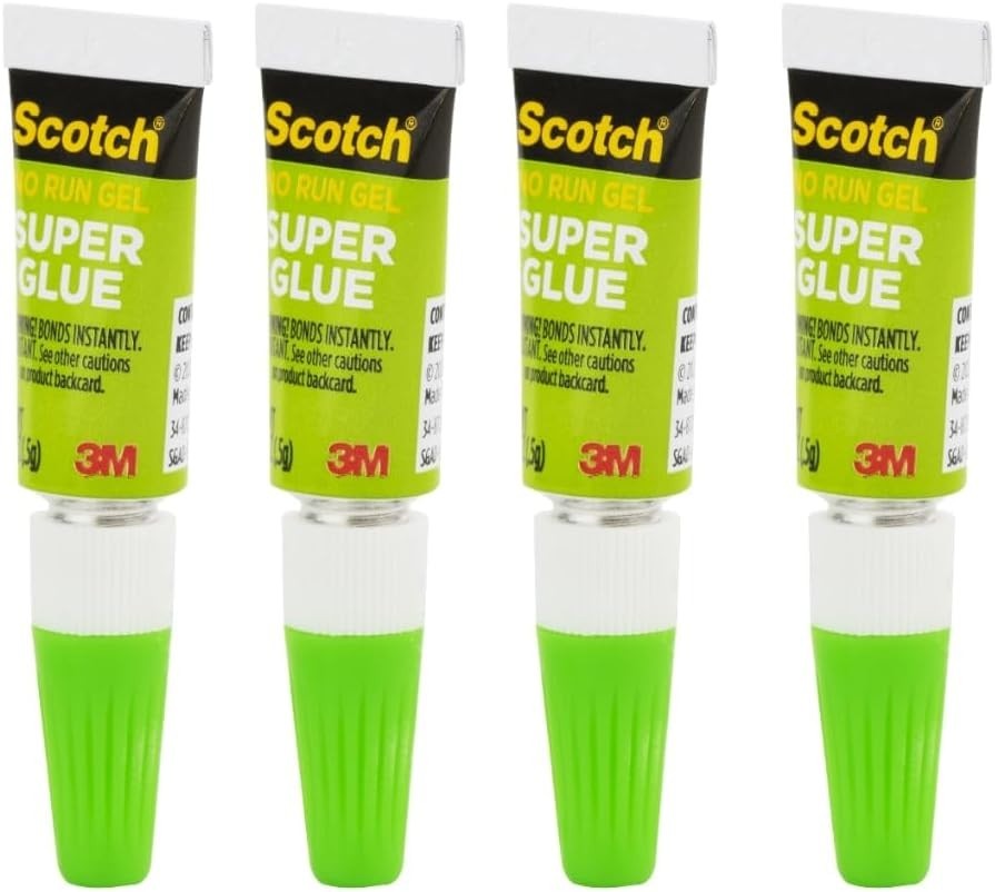 Scotch Super Glue Gel, 4-Pack of Single-Use Tubes, Fast Drying, .017 oz Each