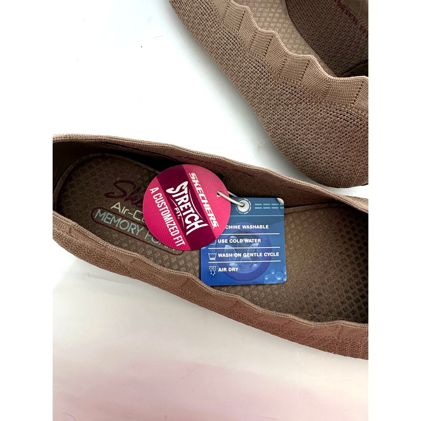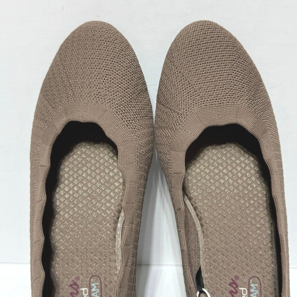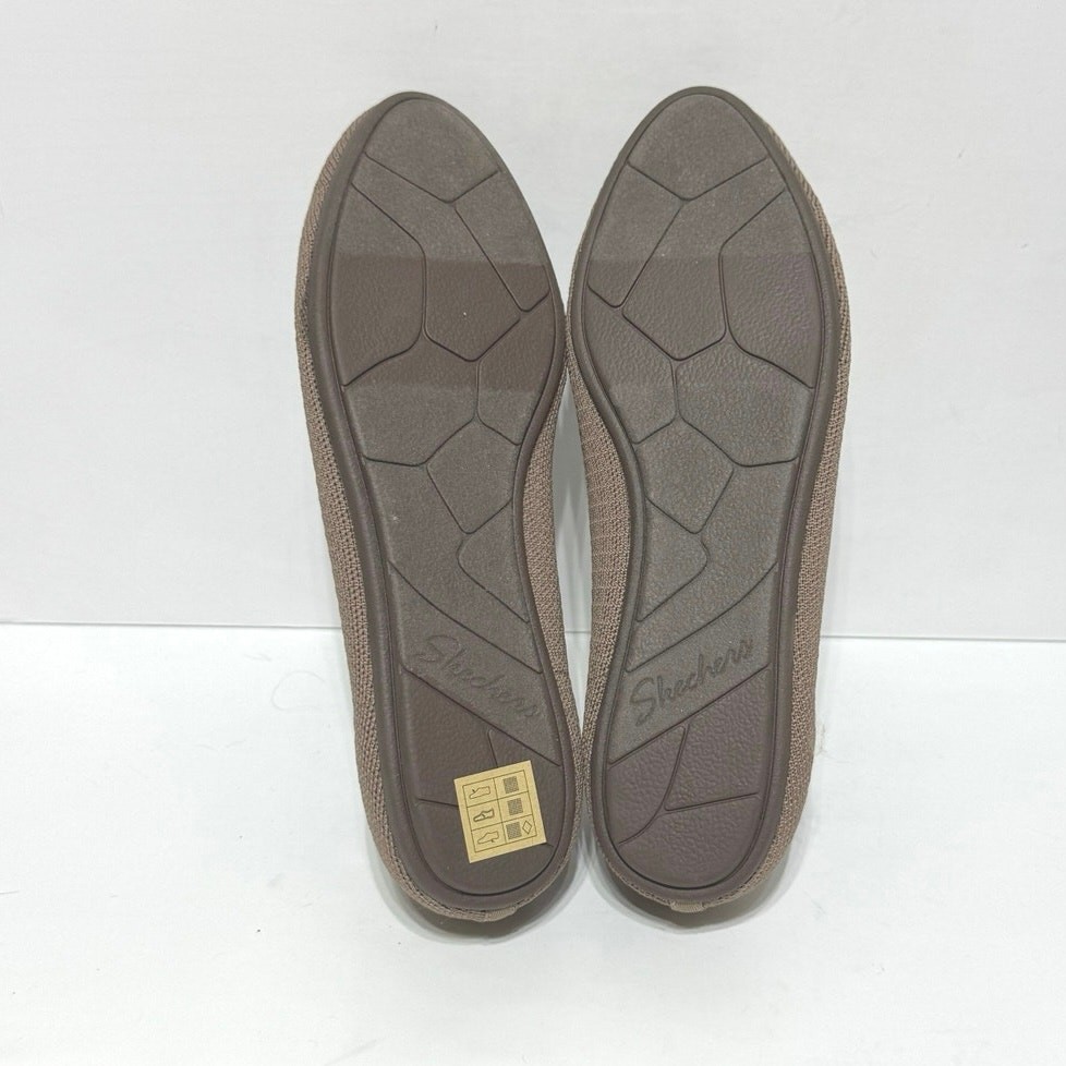 Skechers Women s 9.5 Cleo Stretch Knit Scalloped Edged Ballet Flats Mocha