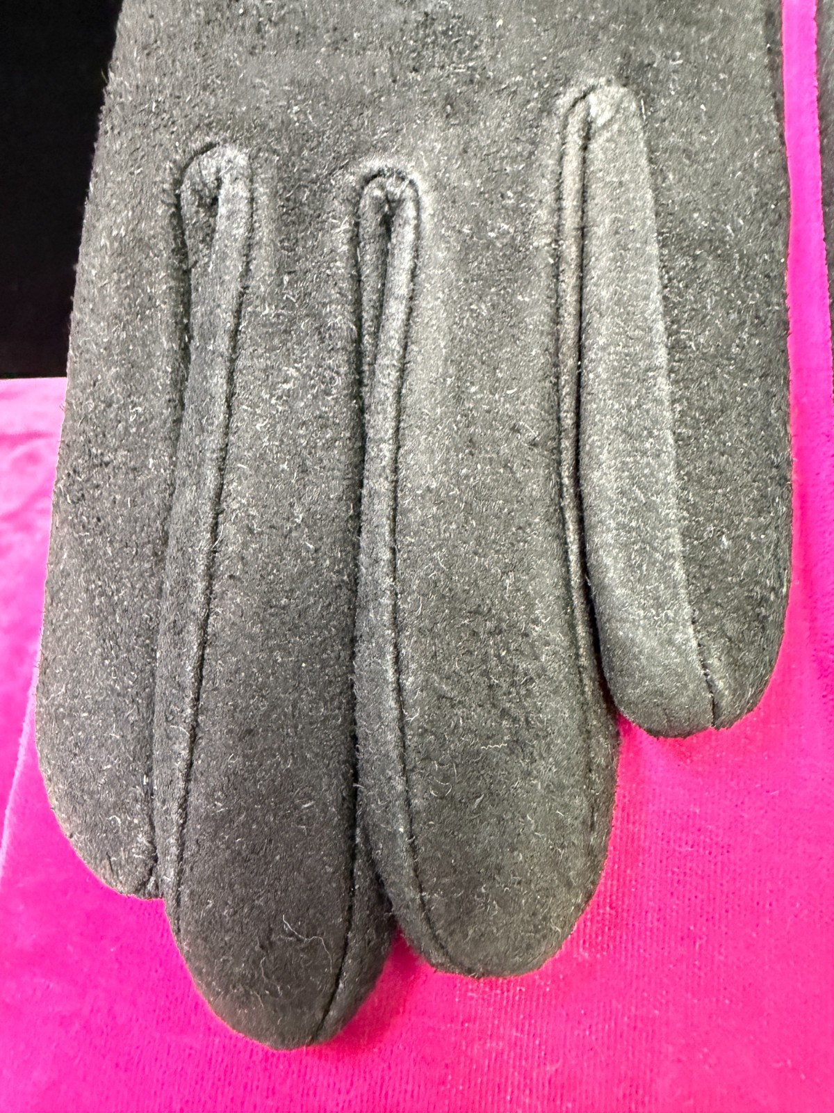 как выглядит VINTAGE BEAUTIFUL BLACK SUEDE LEATHER GLOVES ACRYLIC LINING-NEW OLD STOCK фото