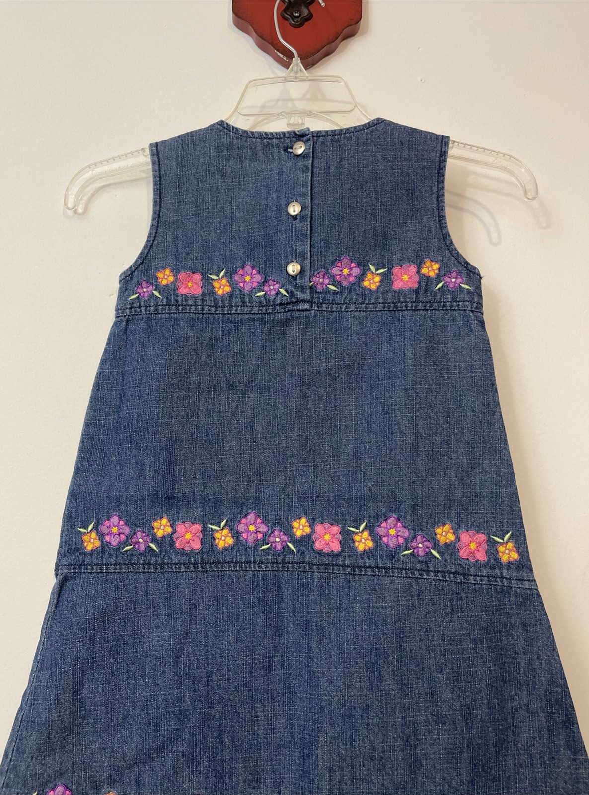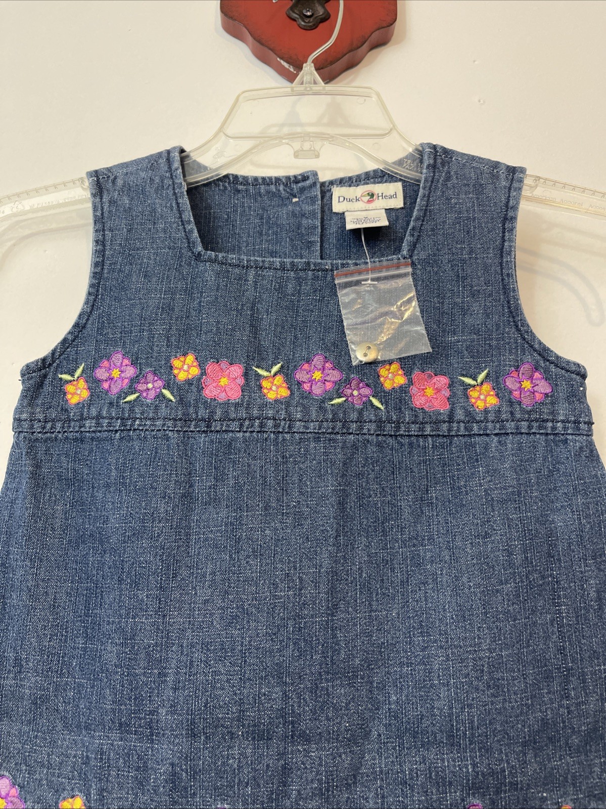 Vintage Girls Duck Head Size 5 Embroidered Floral Cotton Denim Dress NEW A4571