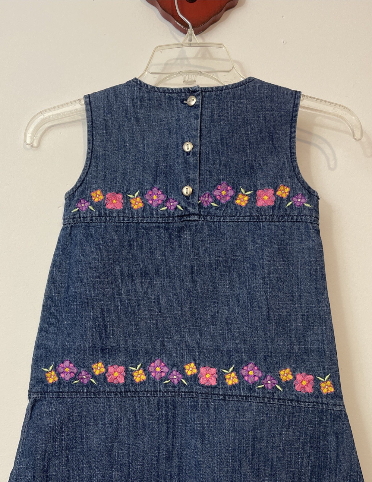 как выглядит Vintage Girls Duck Head Size 5 Embroidered Floral Cotton Denim Dress NEW A4571 фото