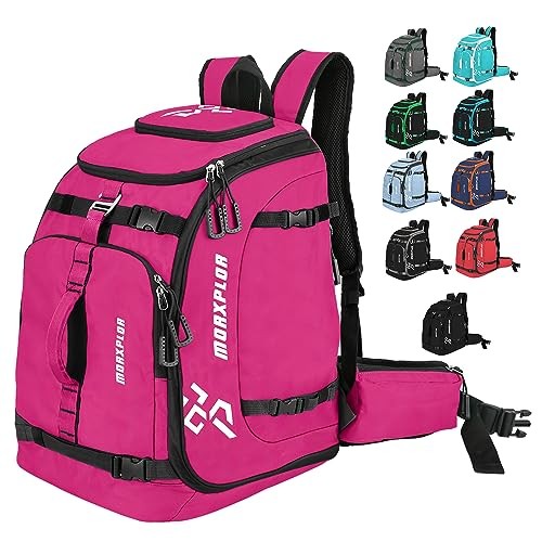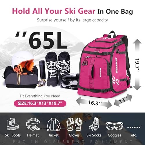 Ski Boot Bag - 65L Padded, Waterproof Ski Travel Backpack for Gear Rose Red