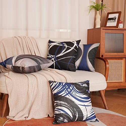 Set of 4 Throw Pillow Covers Modern Abstract 18 x 18 Pack of 4 Dark Blue